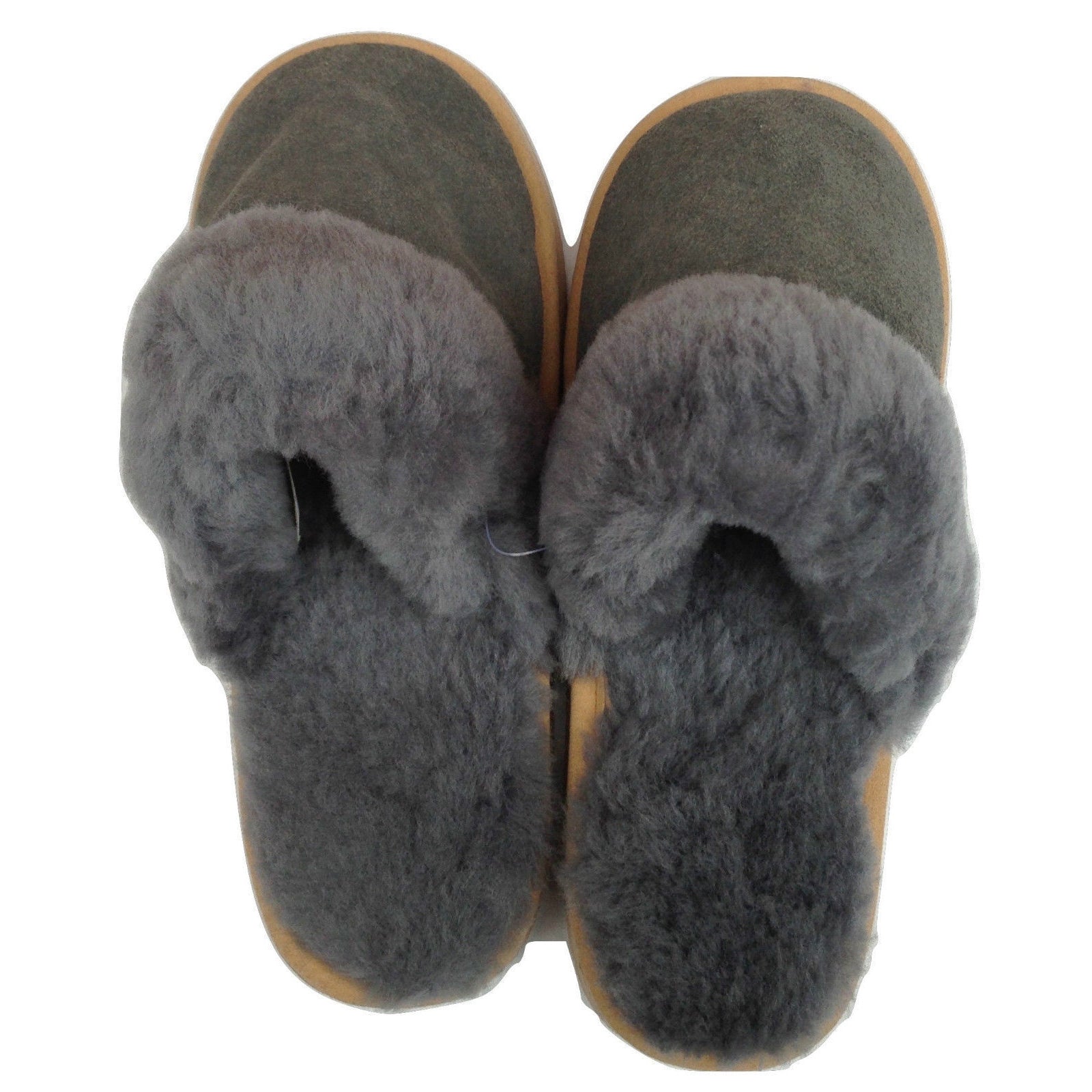 100% Sheepskin Moccasin Slippers Winter Genuine Scuffs Slip On Mens Womens - Grey (with fur) - 6