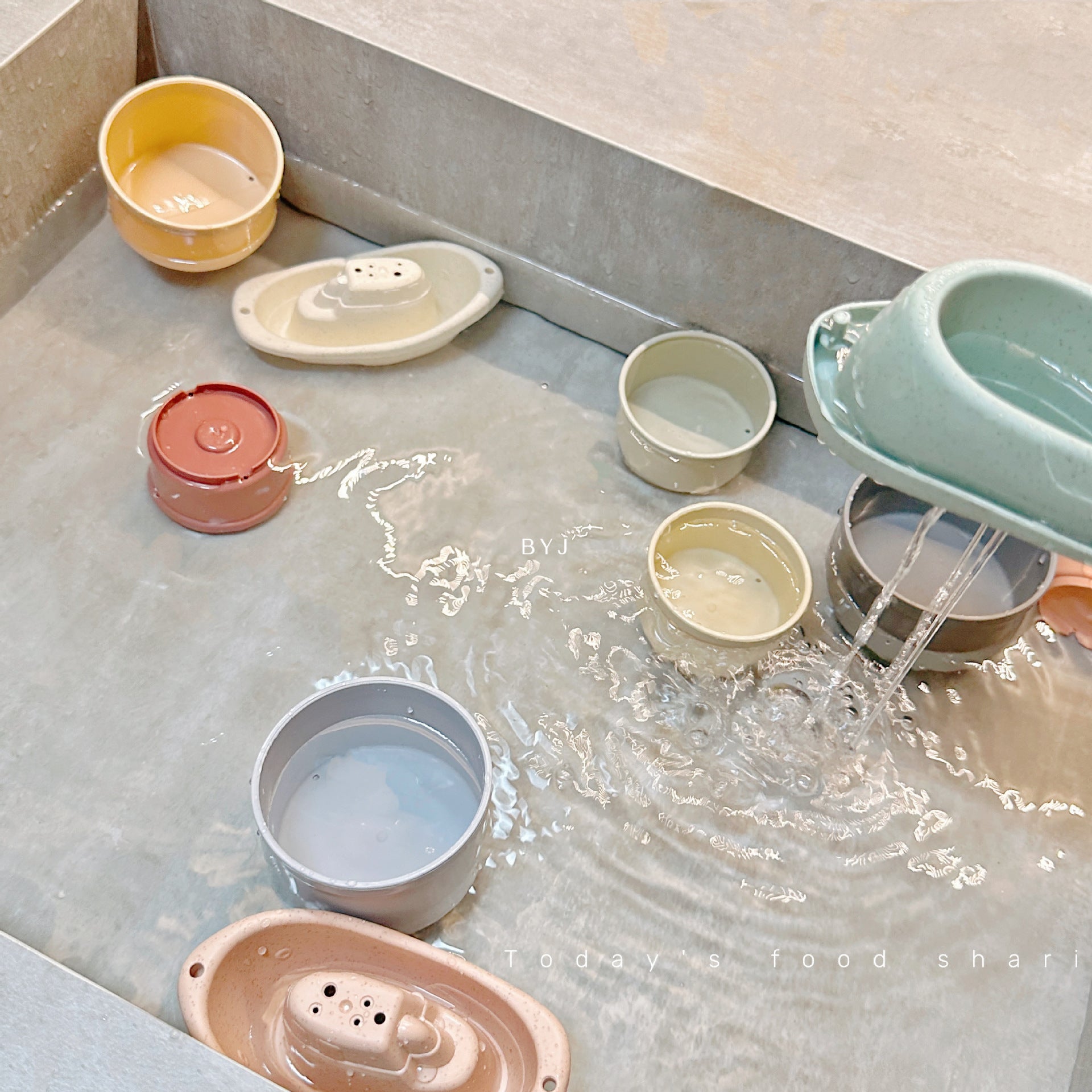 11PCS Sailboat Stacking Cups Bath & Beach Toy Set - Creative Stacking Game for Toddlers, Water Play Educational Building Blocks