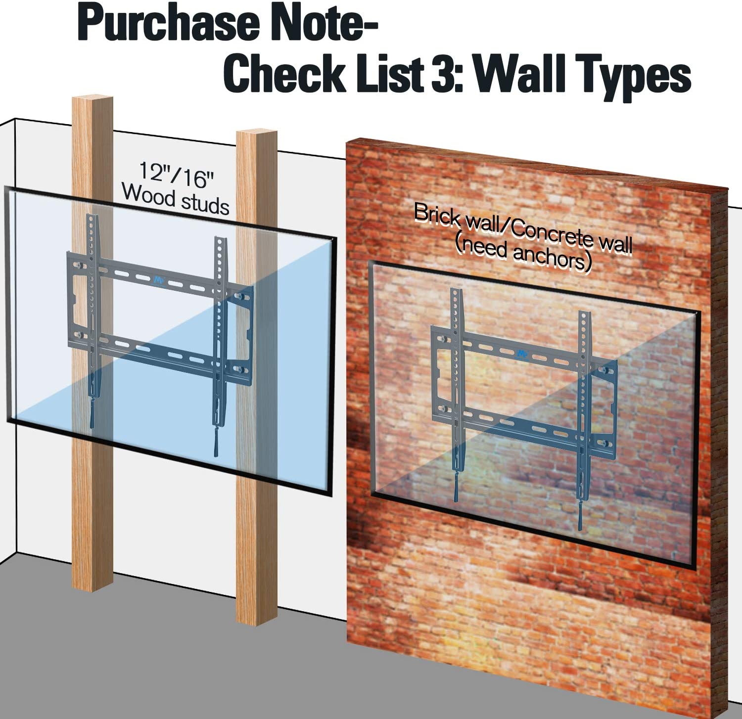 1.TV Weight must be below 100lbs/50kg