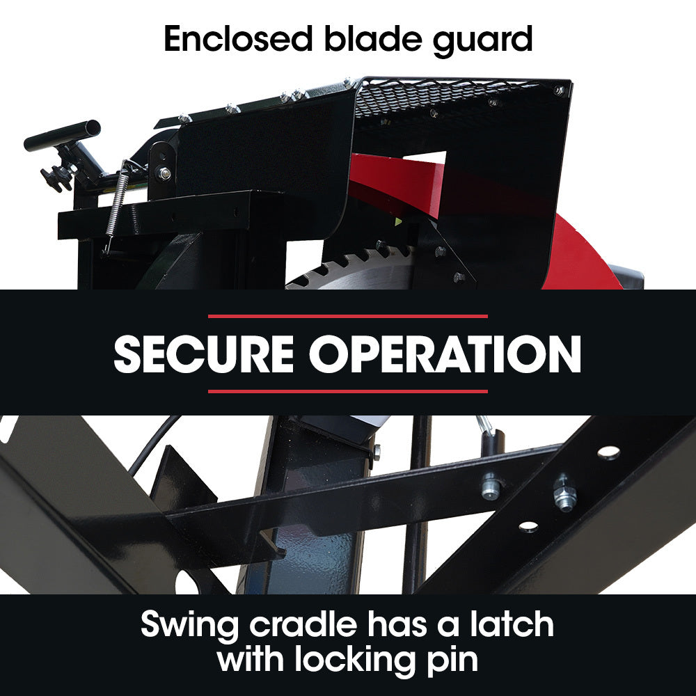 Safety is our top priority, and the LCS-700 is designed with an enclosed blade guard and lockable cradle, ensuring secure and protected operation at all times. And if that's not enough, the log clamping device firmly secures the wood in place, making your cutting experience safer and more efficient than ever before.