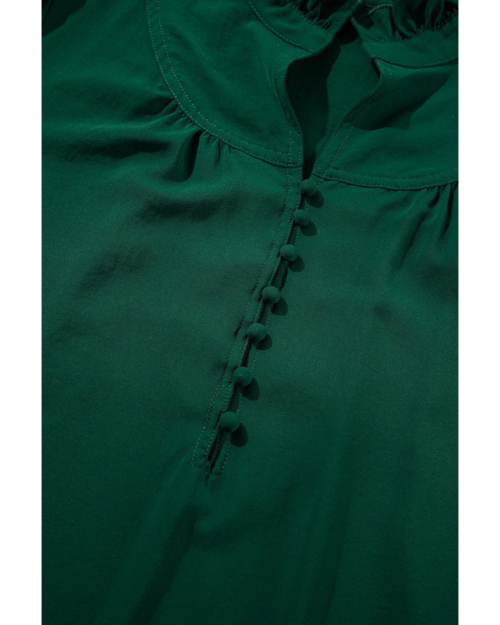 Blackish Green Solid Puff Sleeve Frilled Trim Elegant Blouse - M