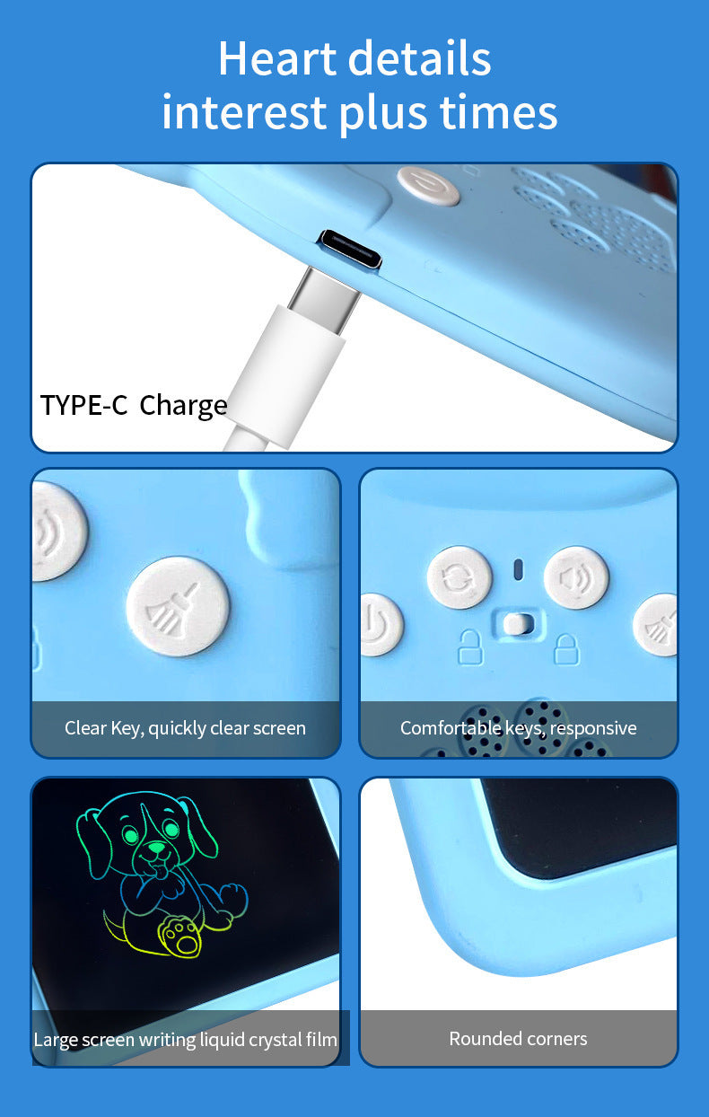 - User-Friendly: Features simple buttons for power, volume, repeat, and clearing the screen. Includes a screen lock switch to prevent accidental erasing. Conveniently rechargeable via USB-C (cable included).