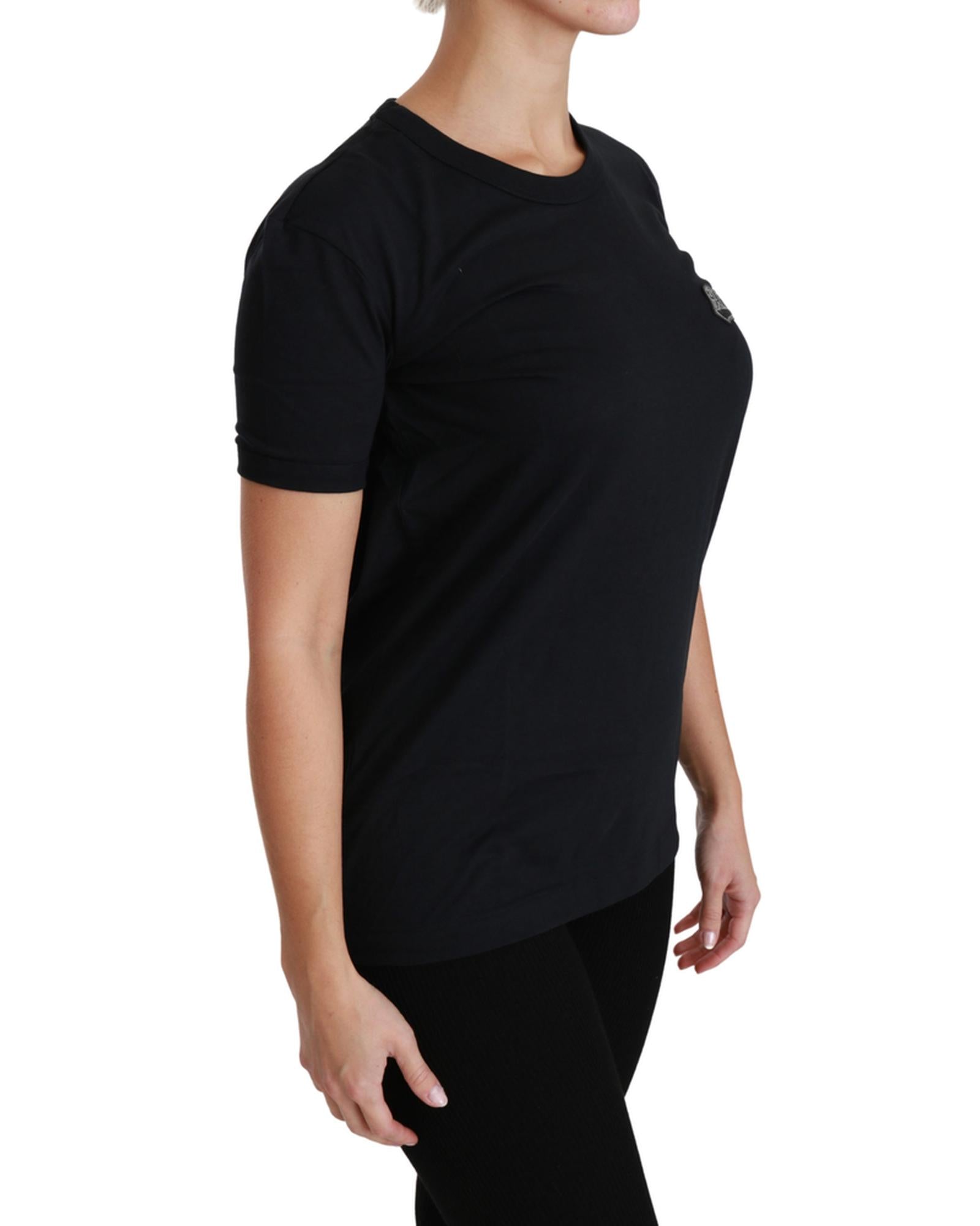 Crewneck Short Sleeve T-shirt with Blue Amore Patch 42 IT Women