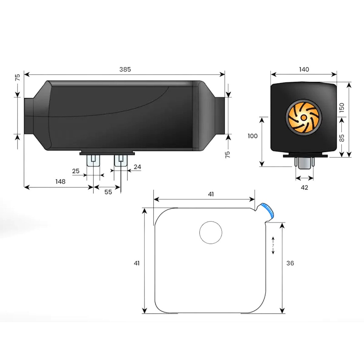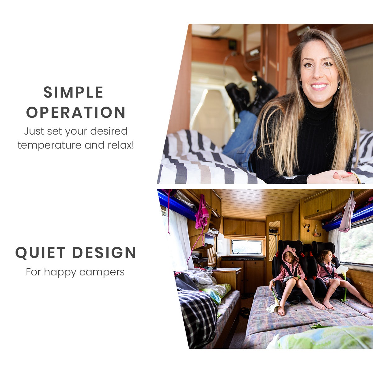 The Thermomate offers powerful, efficient performance thanks to a unique heatsink design that is cast from premium 1050 grade aluminum offering superior thermal conductivity. Whether you're in a caravan, motorhome, camper trailer, truck or boat your space will be toasty in no time, and any frost on windows will quickly disappear. Once the target temperature is reached, the Thermomate is surprisingly quiet, so you'll have happy campers and everyone will enjoy a good night’s sleep.