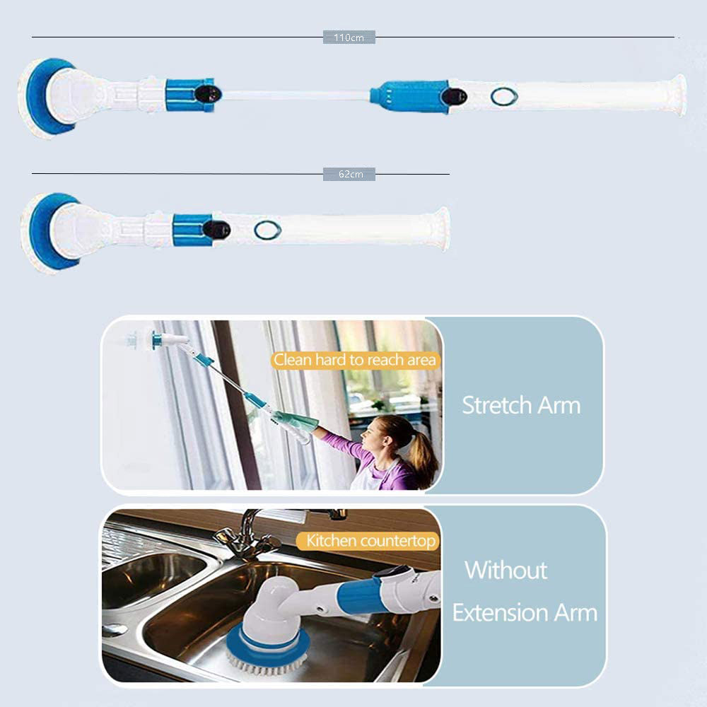 - Functional: Spin Scrubber head is made of high quality brush head. Cleaning brush extension arm and three types of brush heads to meet your various cleaning requirements.