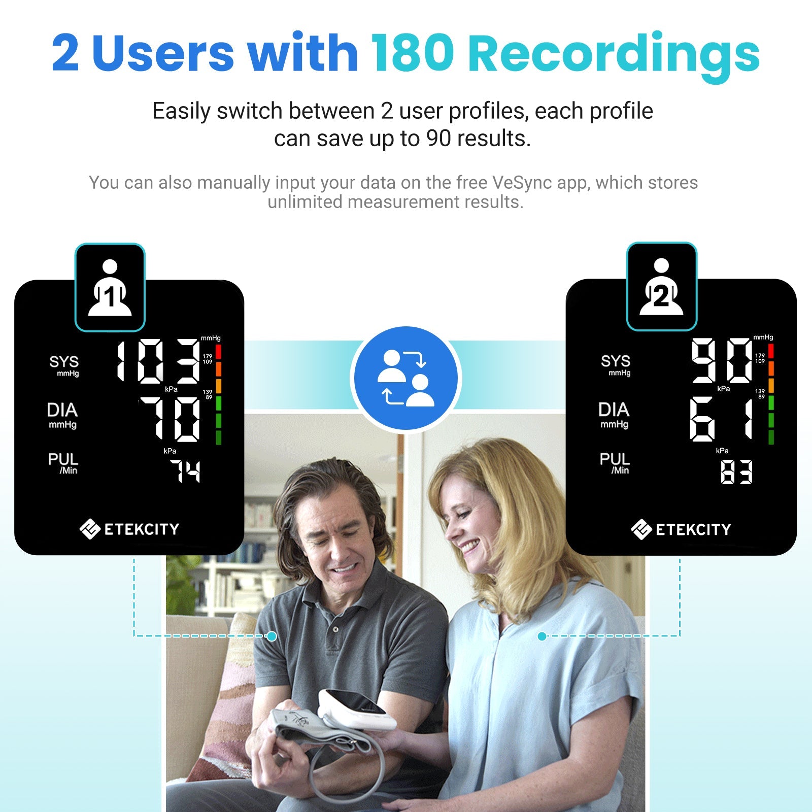 Take care of yourself and your loved ones with irregular heartbeat alerts and a clear, colourful WHO indicator that gives you the most convenient care. Storing up to 90 results for up to 2 users, the machine and the cuff helps you look out for your family