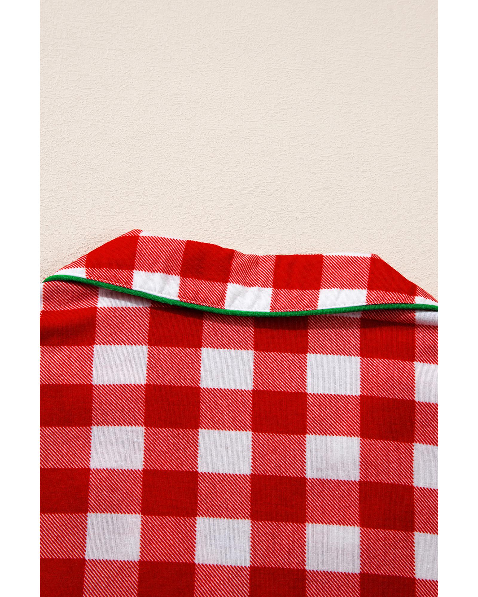 Fiery Red Christmas Plaid Print Shirt and Pants Pajama Set - S
