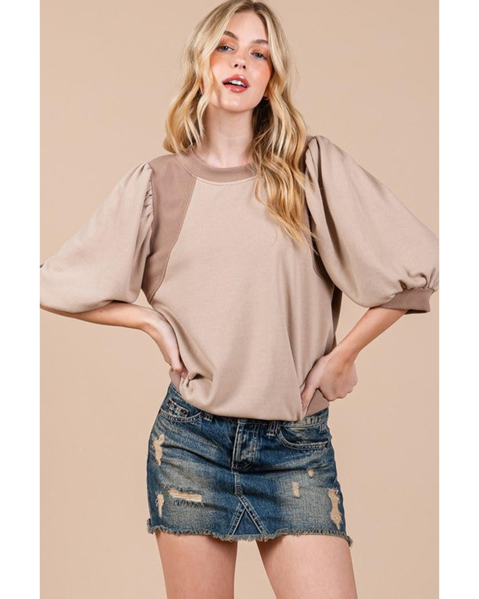 Goat Half Lantern Sleeve Solid Colour Pullover Top - S