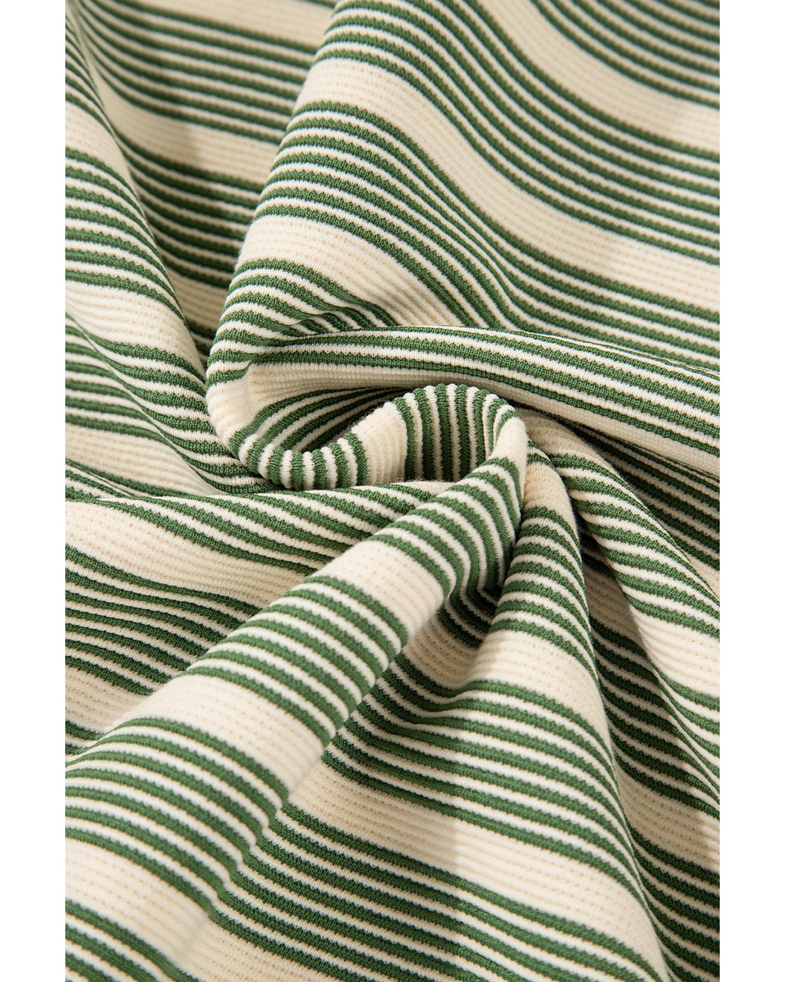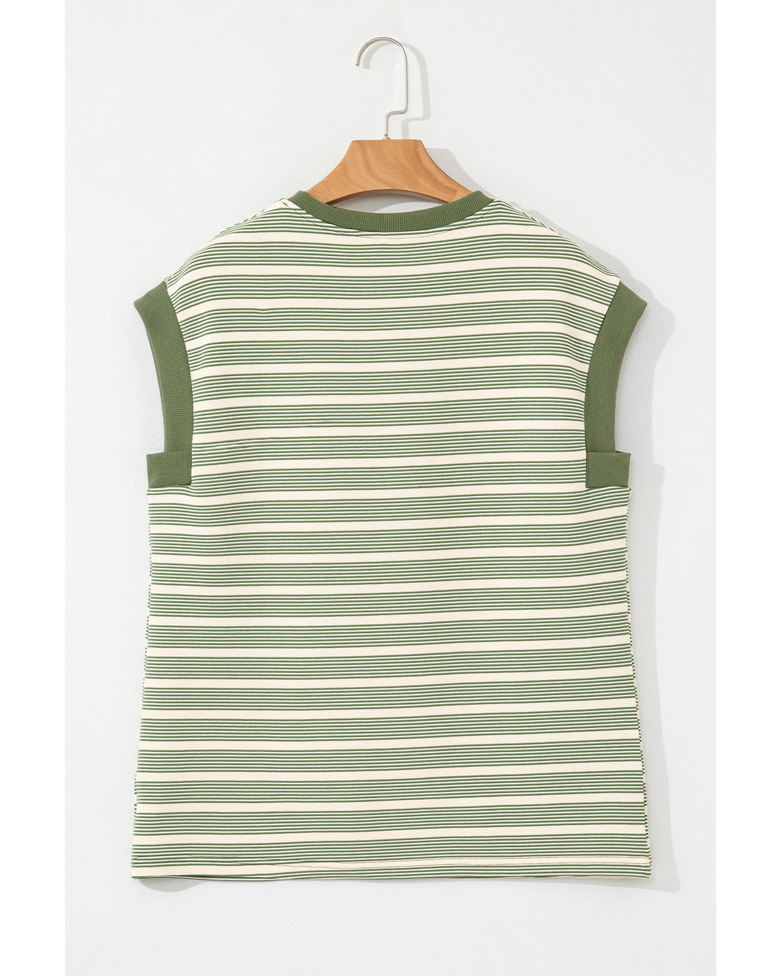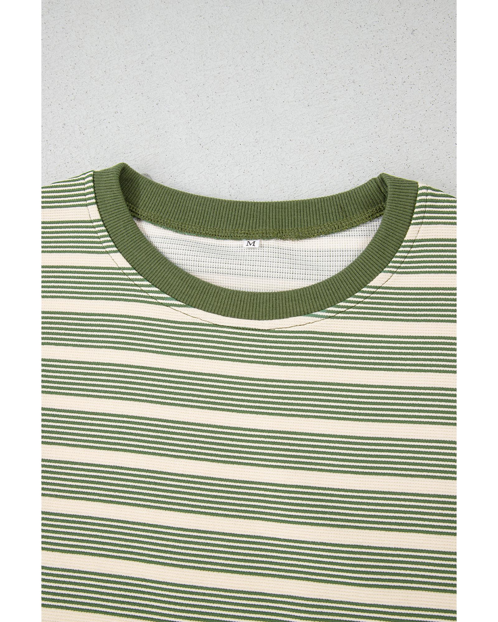 - Green Stripe Contrast Edge Short Batwing Sleeve T