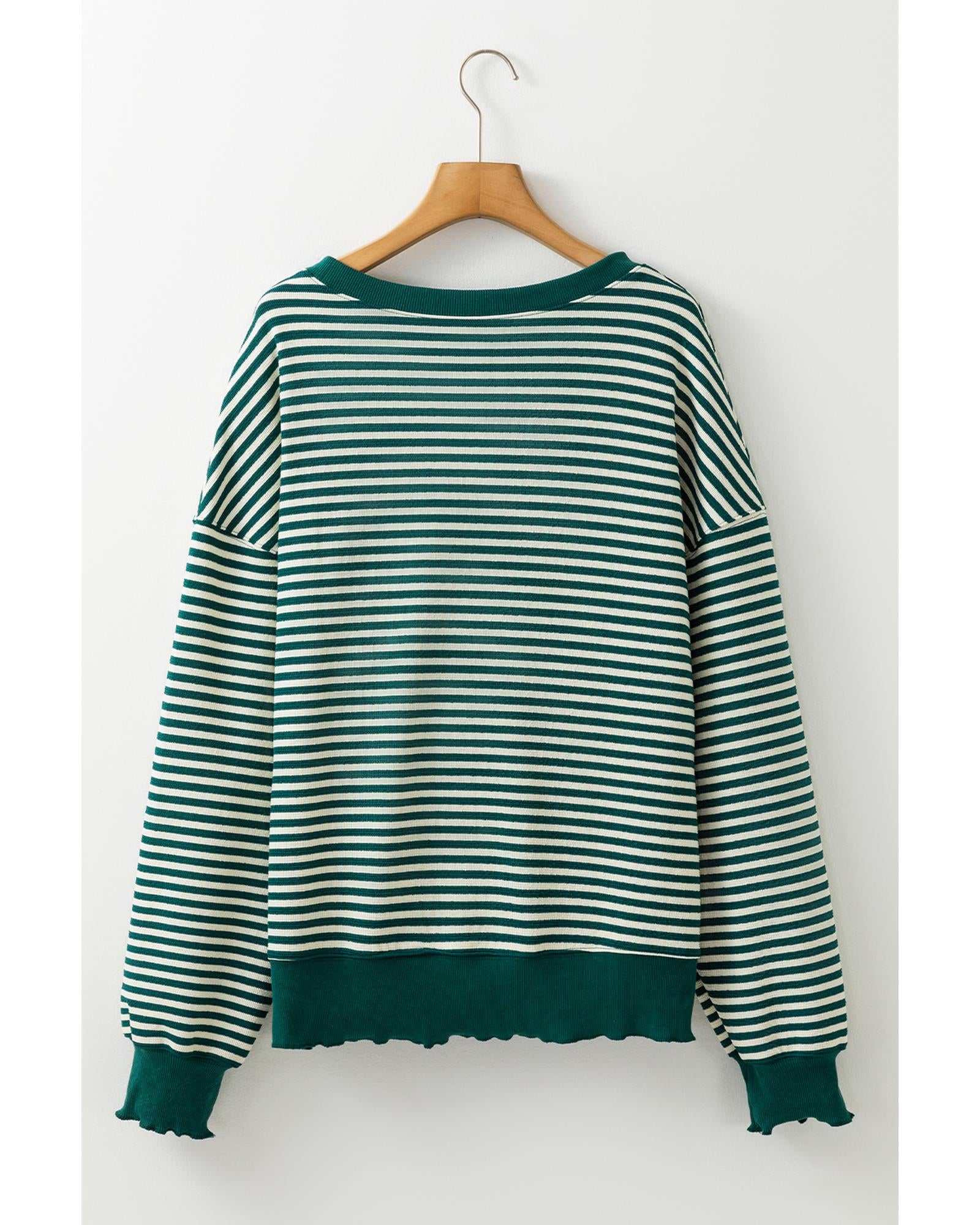 Green Stripe Turkey Pattern Drop Shoulder Pullover Top - L