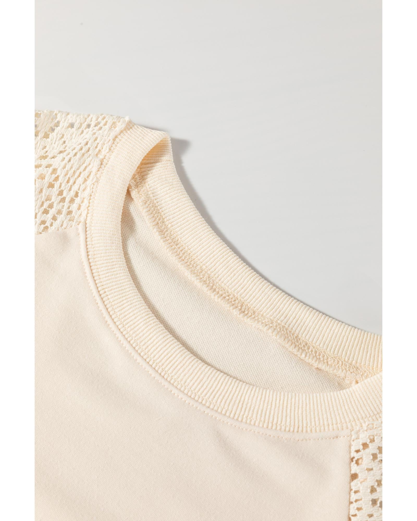 Jet Stream Lace Crochet Short Sleeve Round Neck T Shirt - M