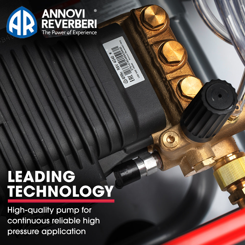 The TX870 Gen II has a thumping 420cc 15HP motor that is reliable as it is powerful. The motor is specifically mated to an RSV series pump from AR / Annovi Reverberi (Italy). This triplex plunger design features bronze conrods and is designed for serious sustained pressure of 4207PSI! With life testing of over 500 hours, this brass head pump is perfect for those in the building or landscaping industry, or any application where time is money.