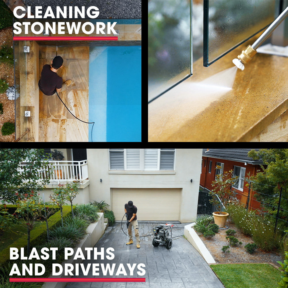 Five included Pro-tip nozzles are comprehensively tested to endure intensive spray pressure for years. Simply switch to the appropriate nozzle to go from light cleaning duties to stripping those hard to clean footpaths and paved areas.