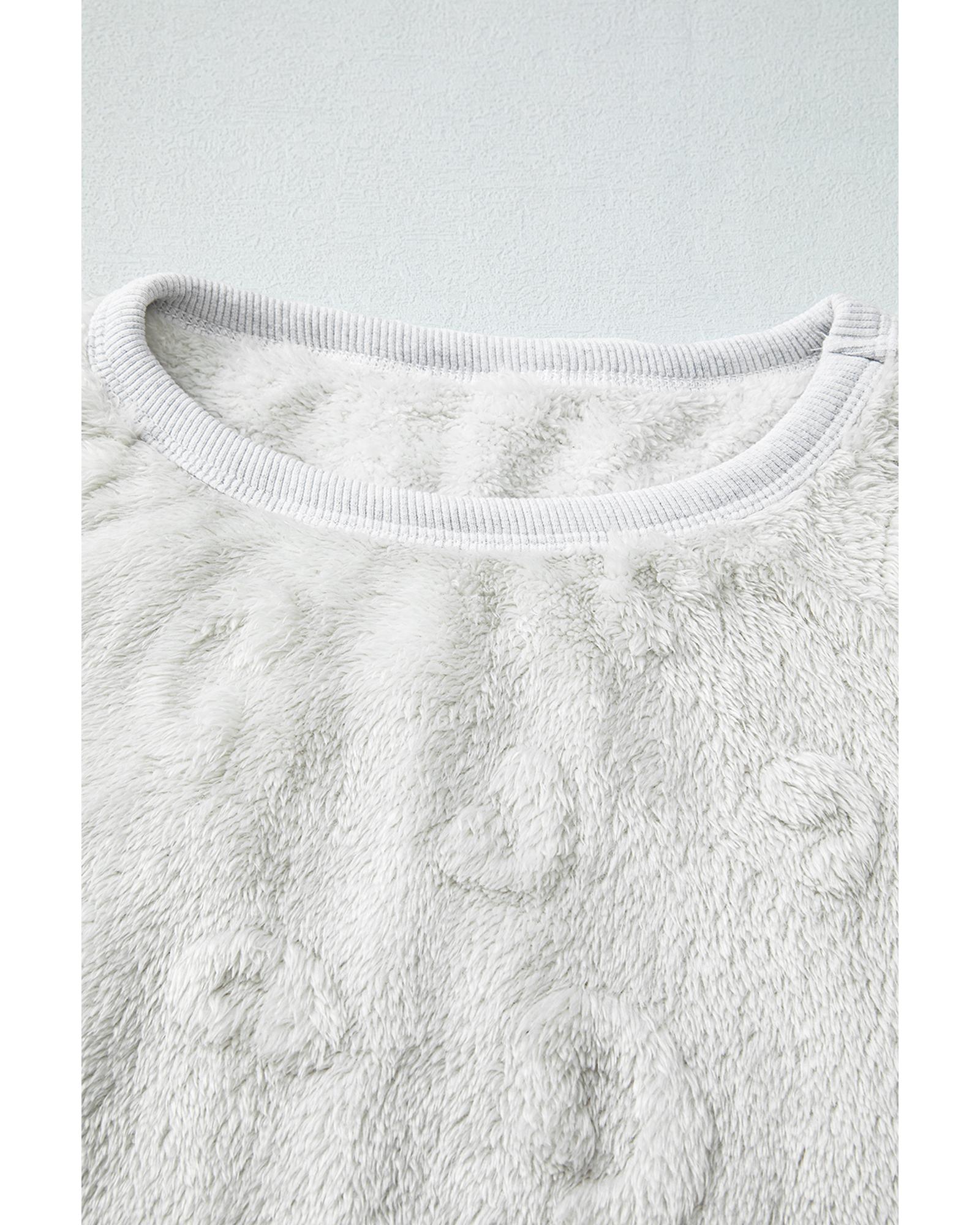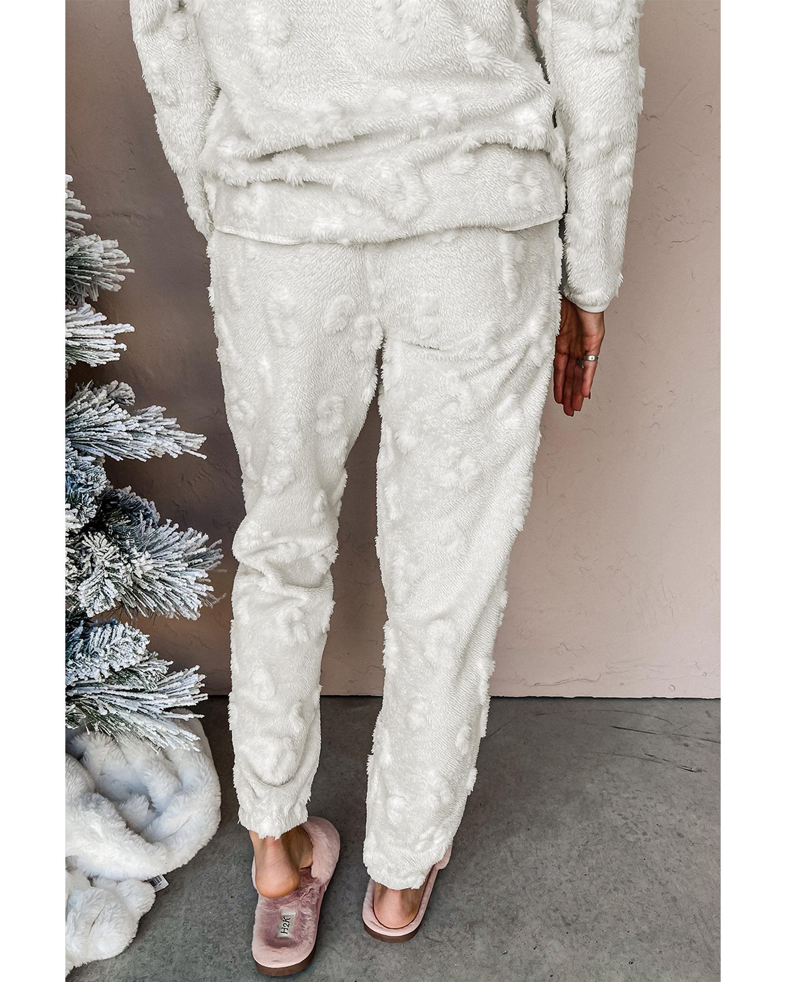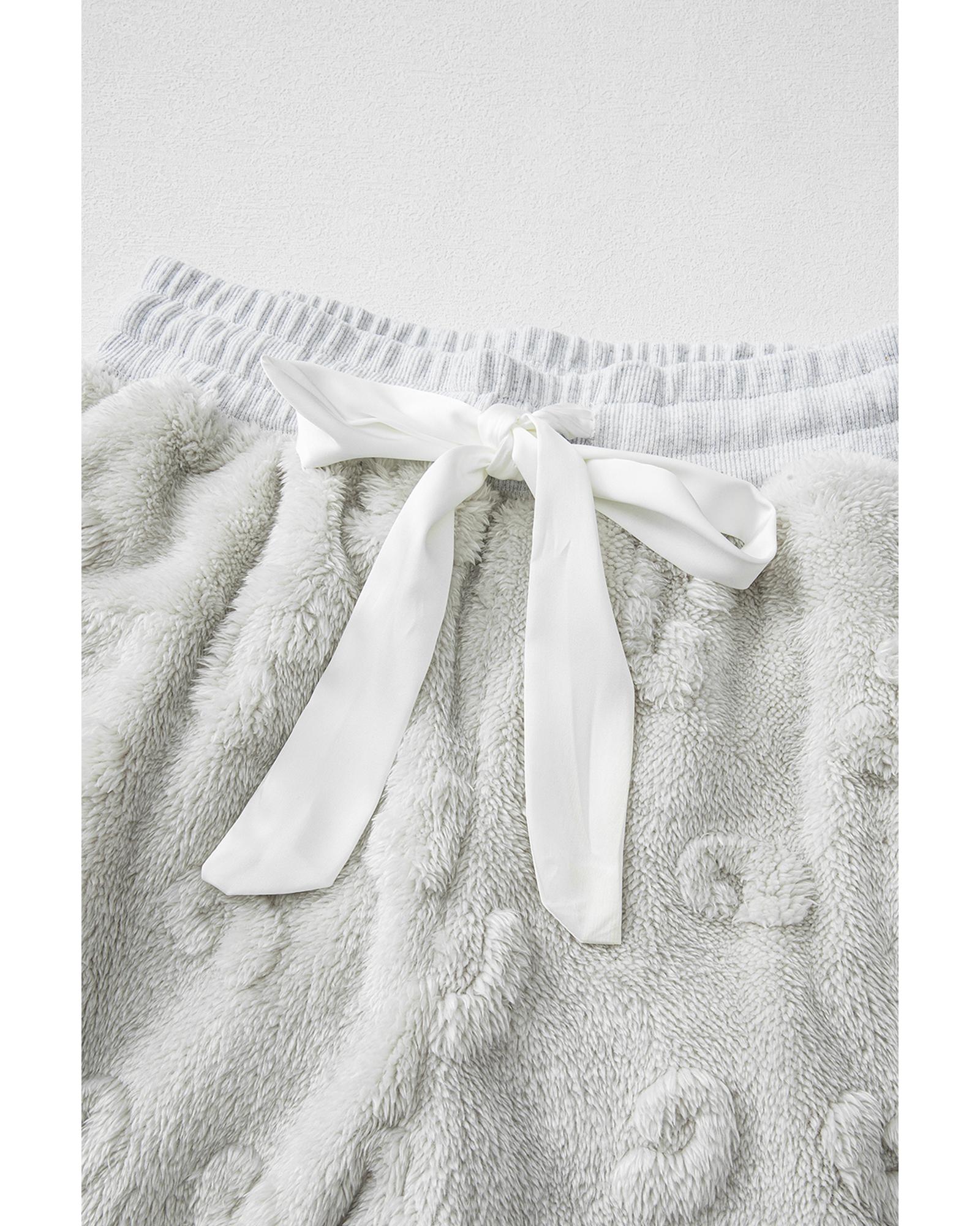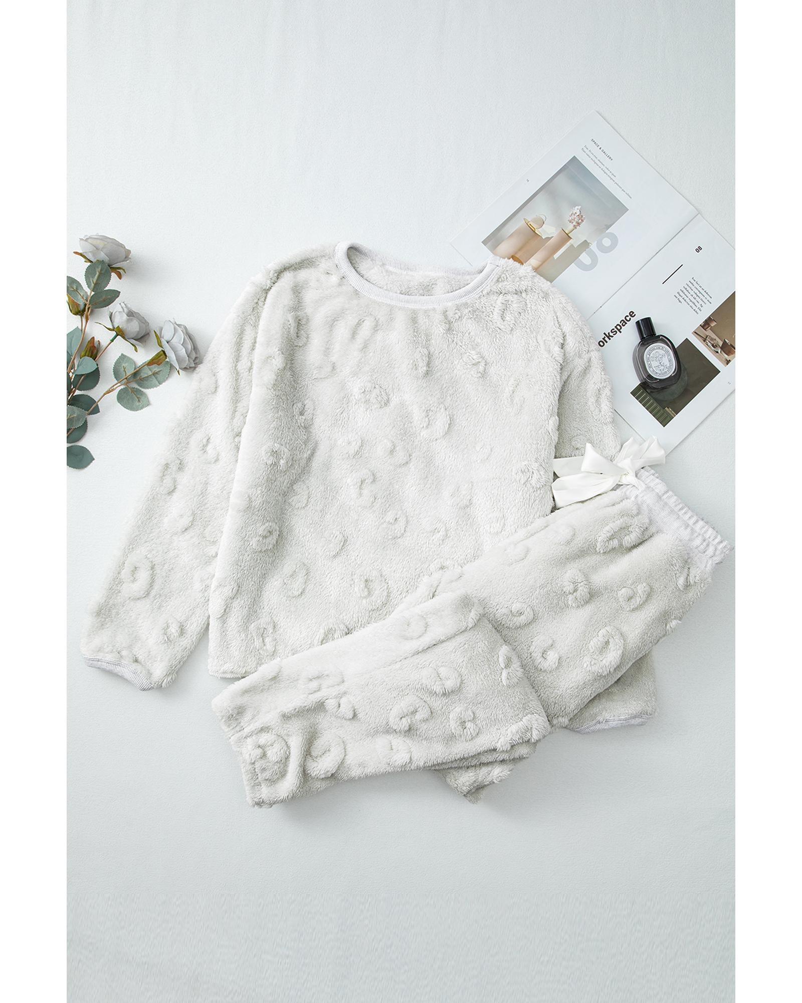 Light Grey Leopard Textured Loose Fit Fleece Lounge Set - S