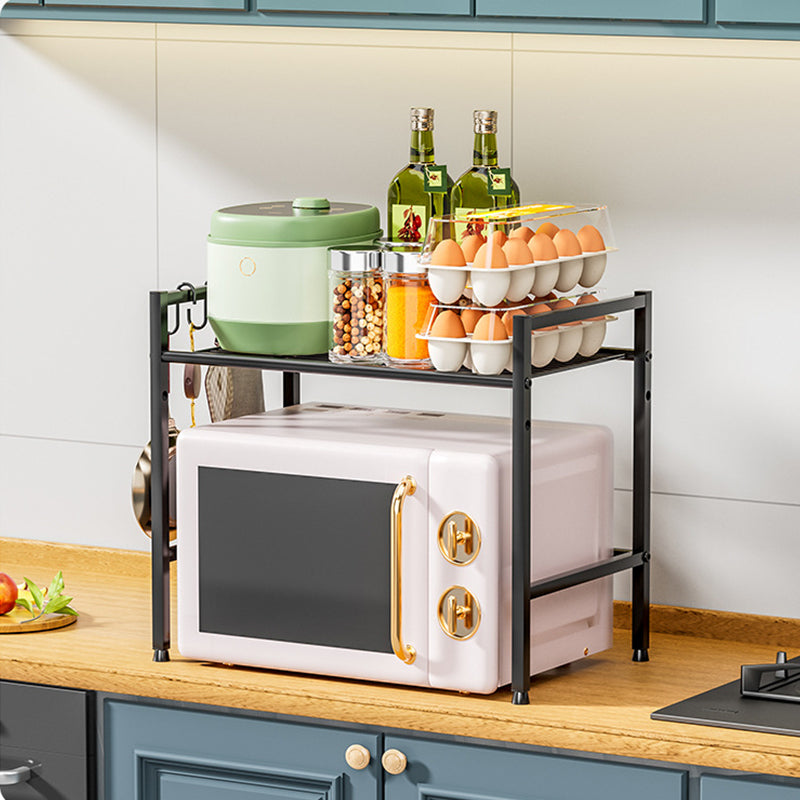 Metal Shelf For Microwave Oven 2 Level Kitchen Storage Rack With 4 Hooks-Black