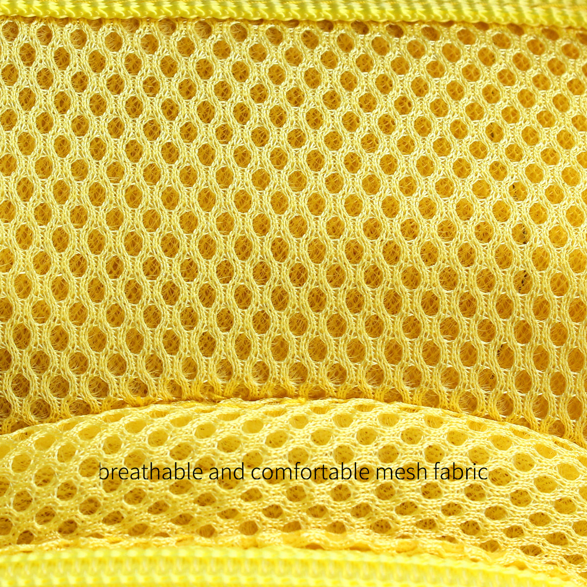 Adjustable straps and mesh harness provide maximum fit, breathability and comfortability.