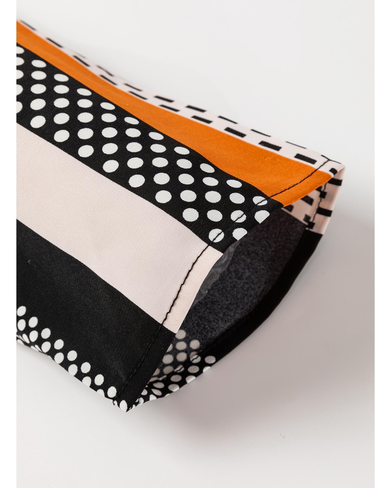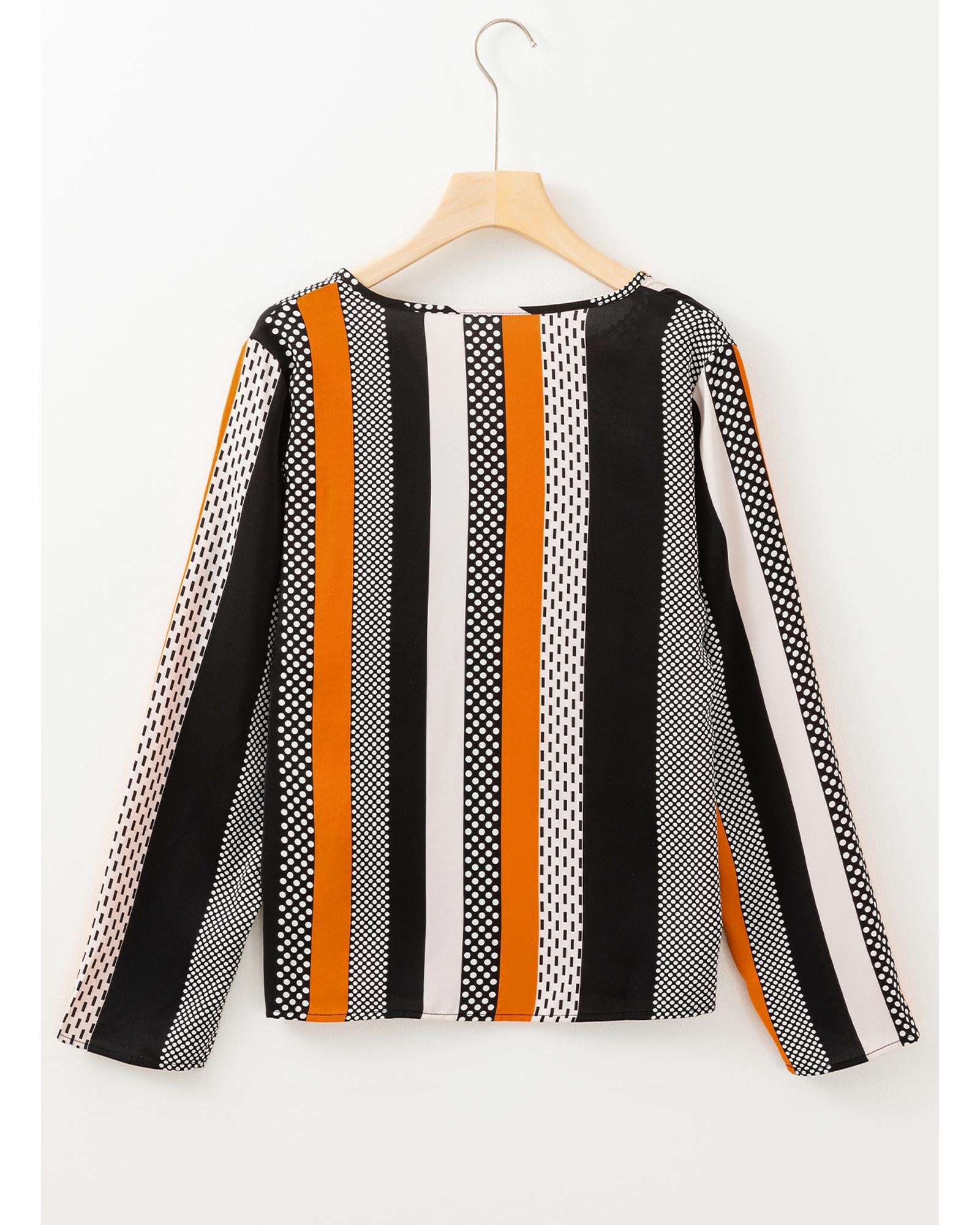 Orange Geo Print Colorblock Notched V Neck Blouse - S
