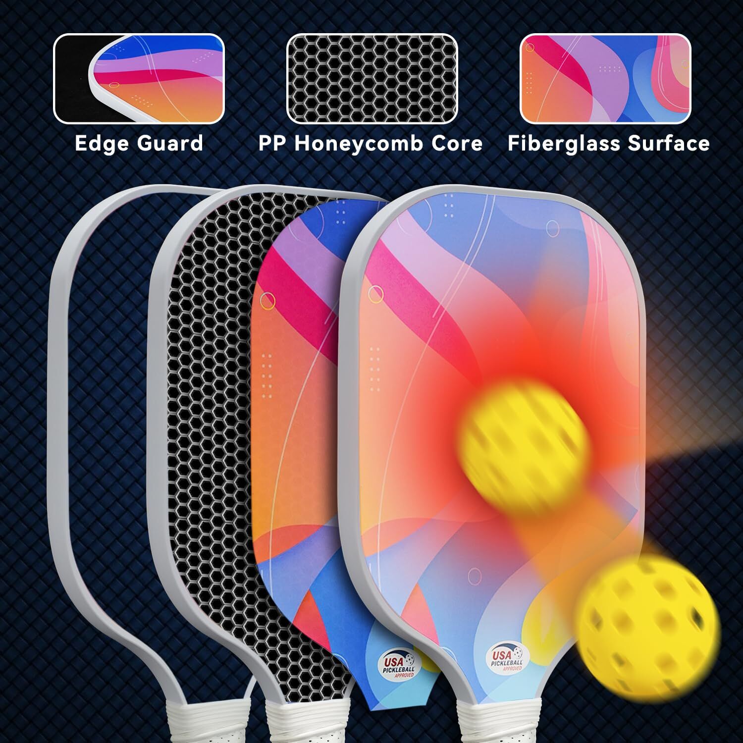 Pickleball Paddle Set with 4 Balls Fiberglass Surface, Lightweight Grip | Ideal for Indoor Outdoor Play