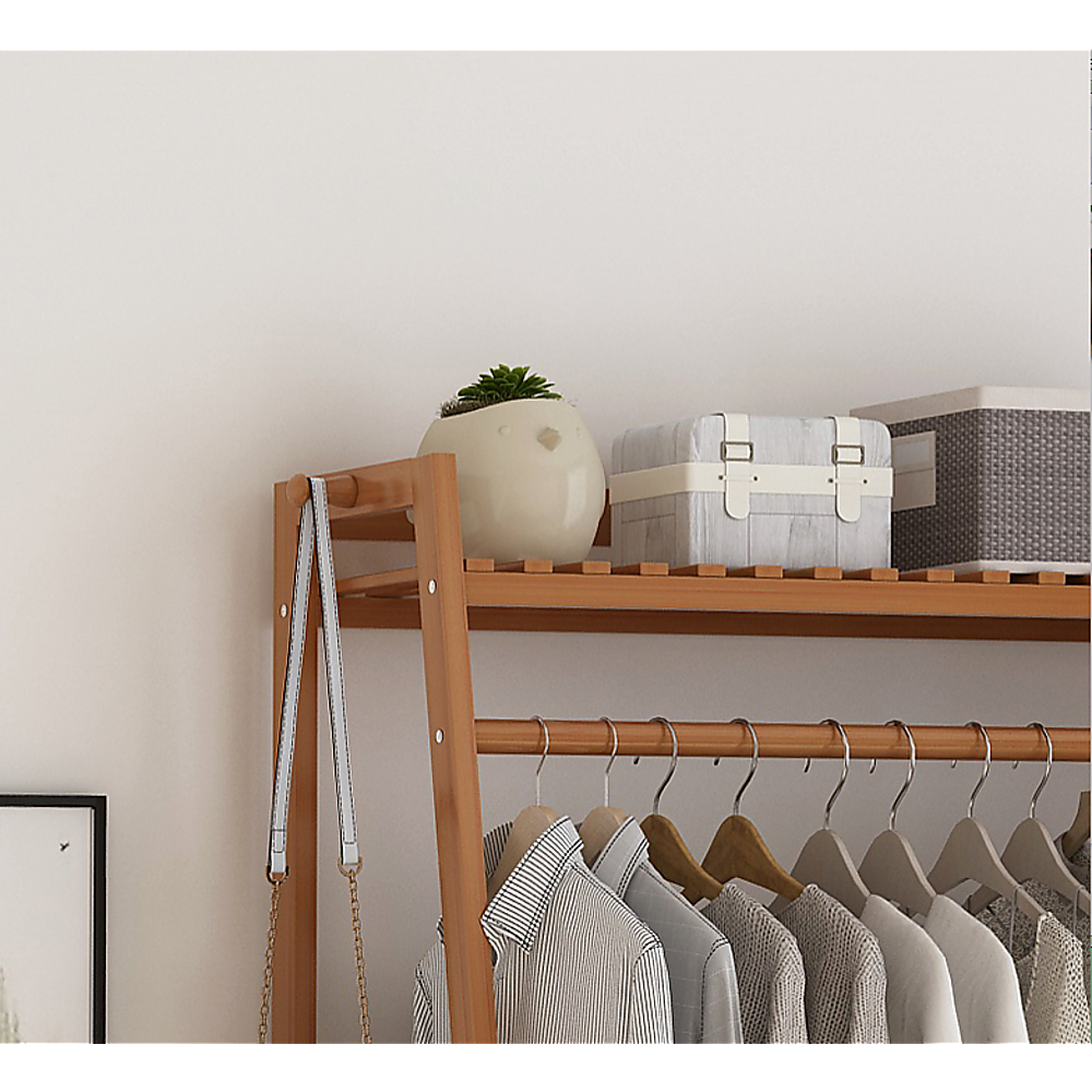 Portable Clothes Rack Coat Garment Stand Bamboo Rail Hanger Airer Closet