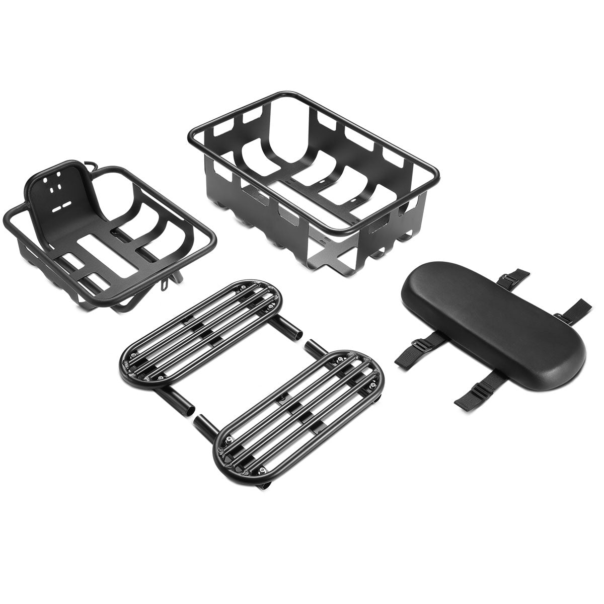 Complete Kit: Complete Accessory kit for Cargo Bikes, Designed for Progear E-Moover, Kit includes Front Basket, Footboards, Front Rack, Padded Rear Seat, Rear Basket.