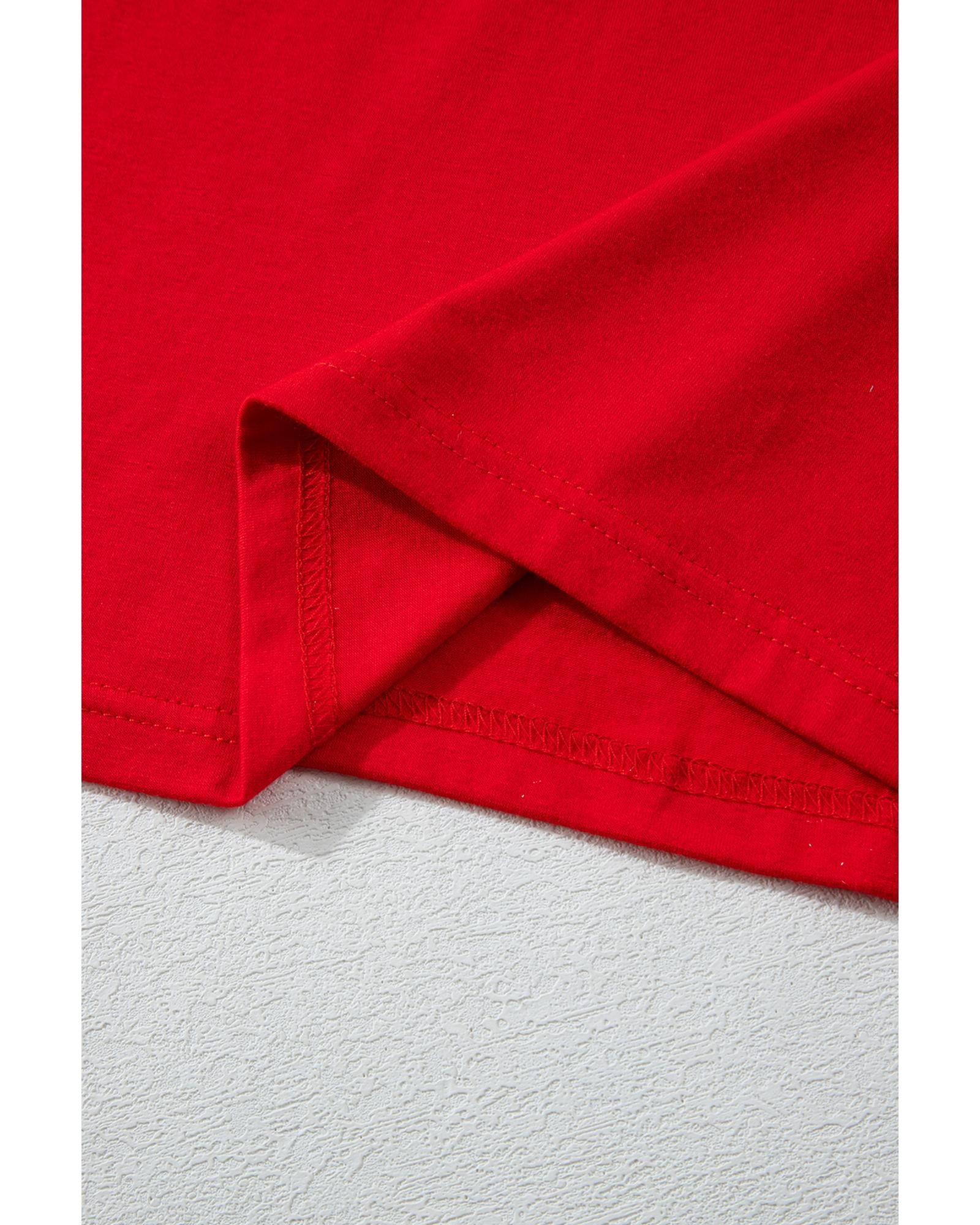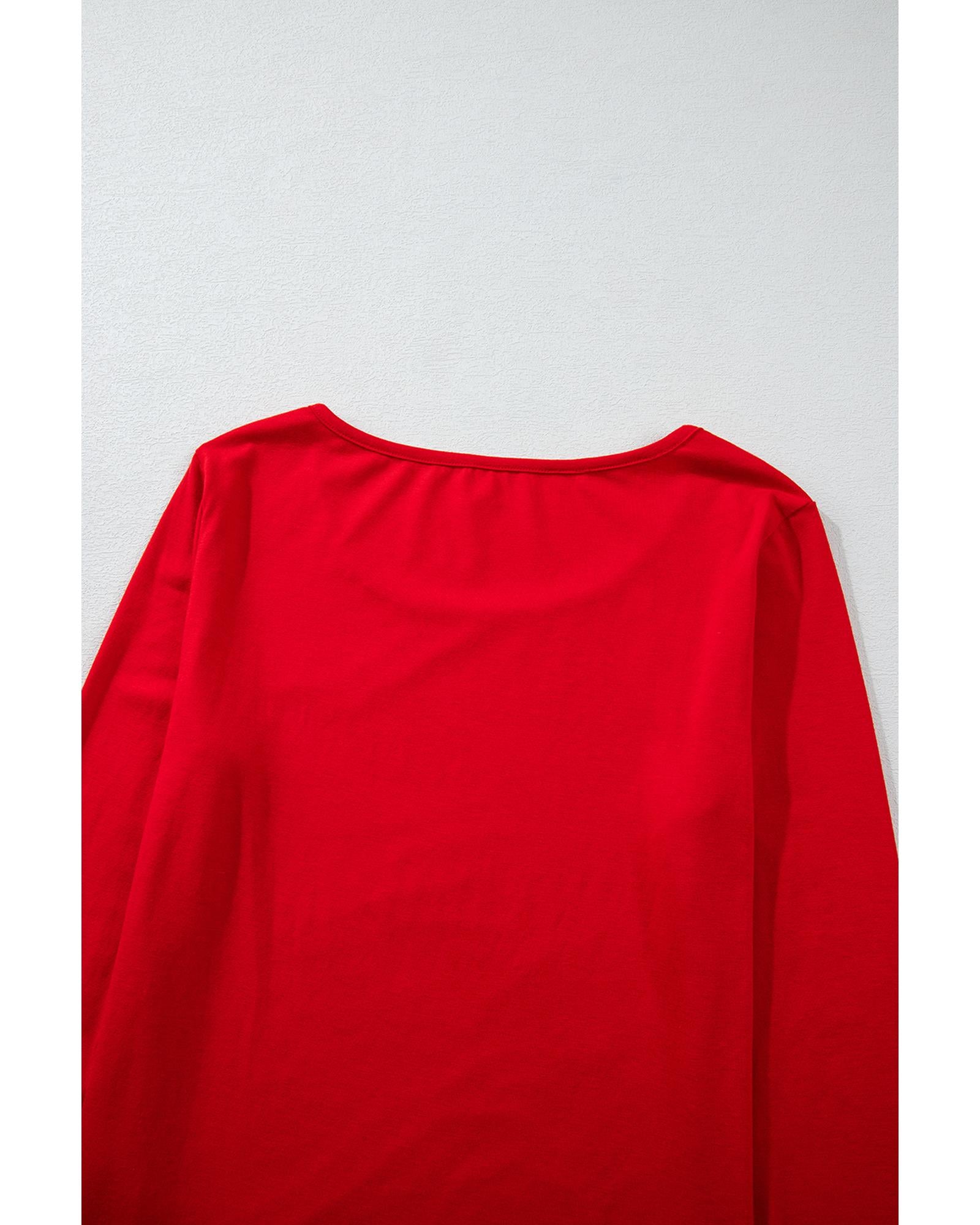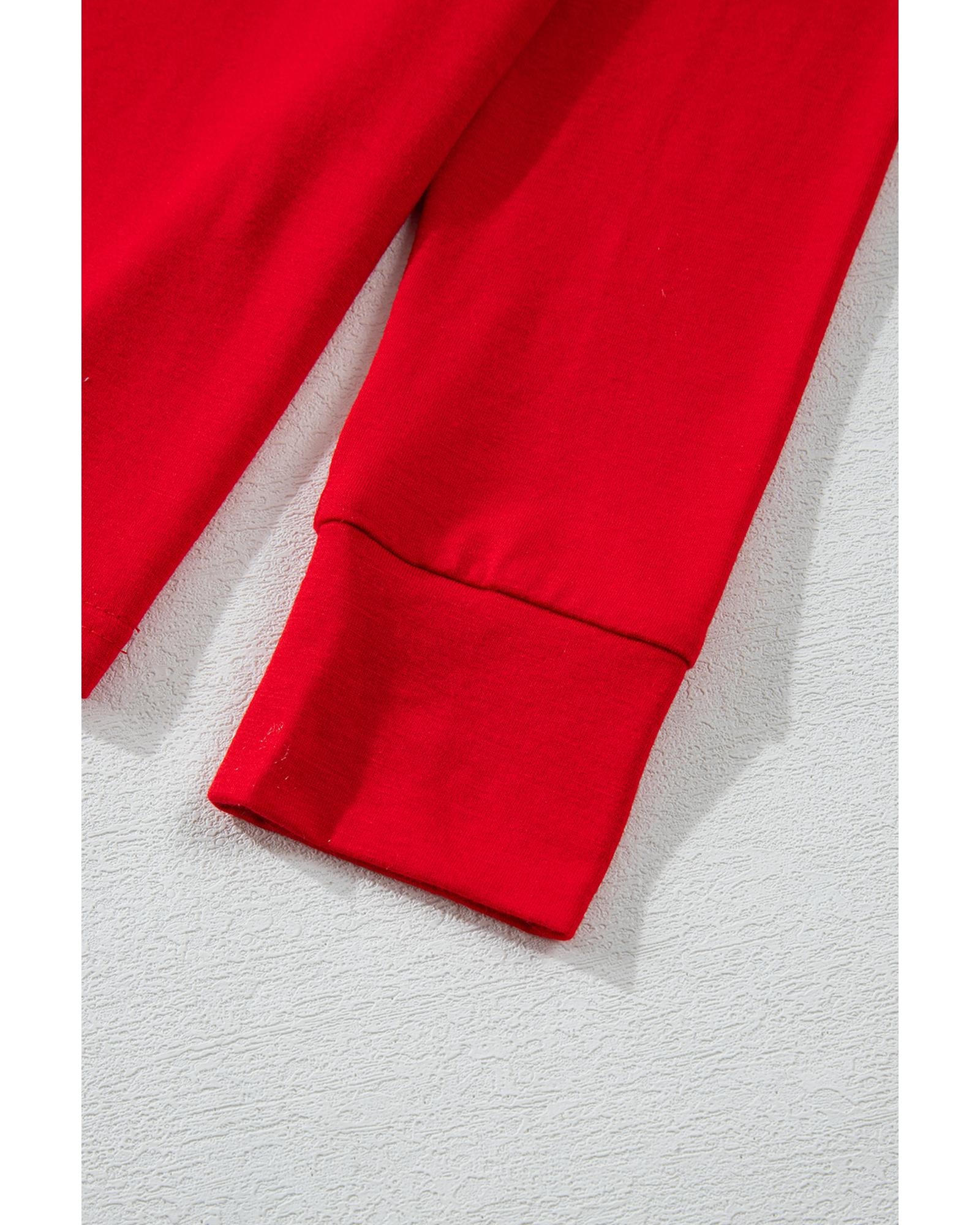 Red Solid Top and Christmas Pants Two Piece Lounge Set - L