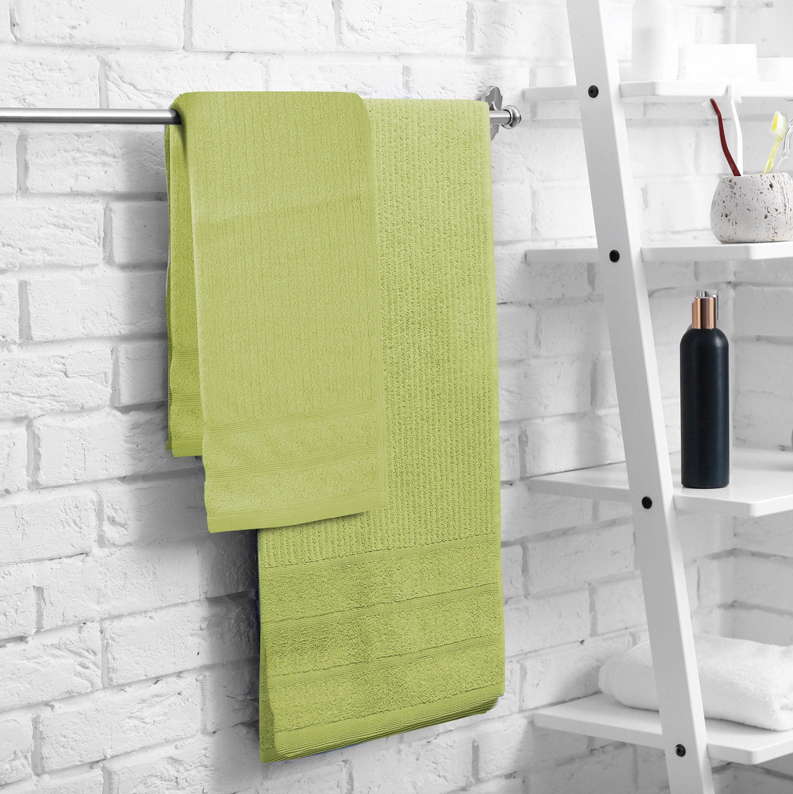- Set includes: 2 x Bath Towels (69cm x 137cm), 2 x Hand Towels (40cm x 60cm), 2 x Face Towels (33cm x 33cm), 1 x Bath Mat (50cm x 80cm), 1 x Hand Glove