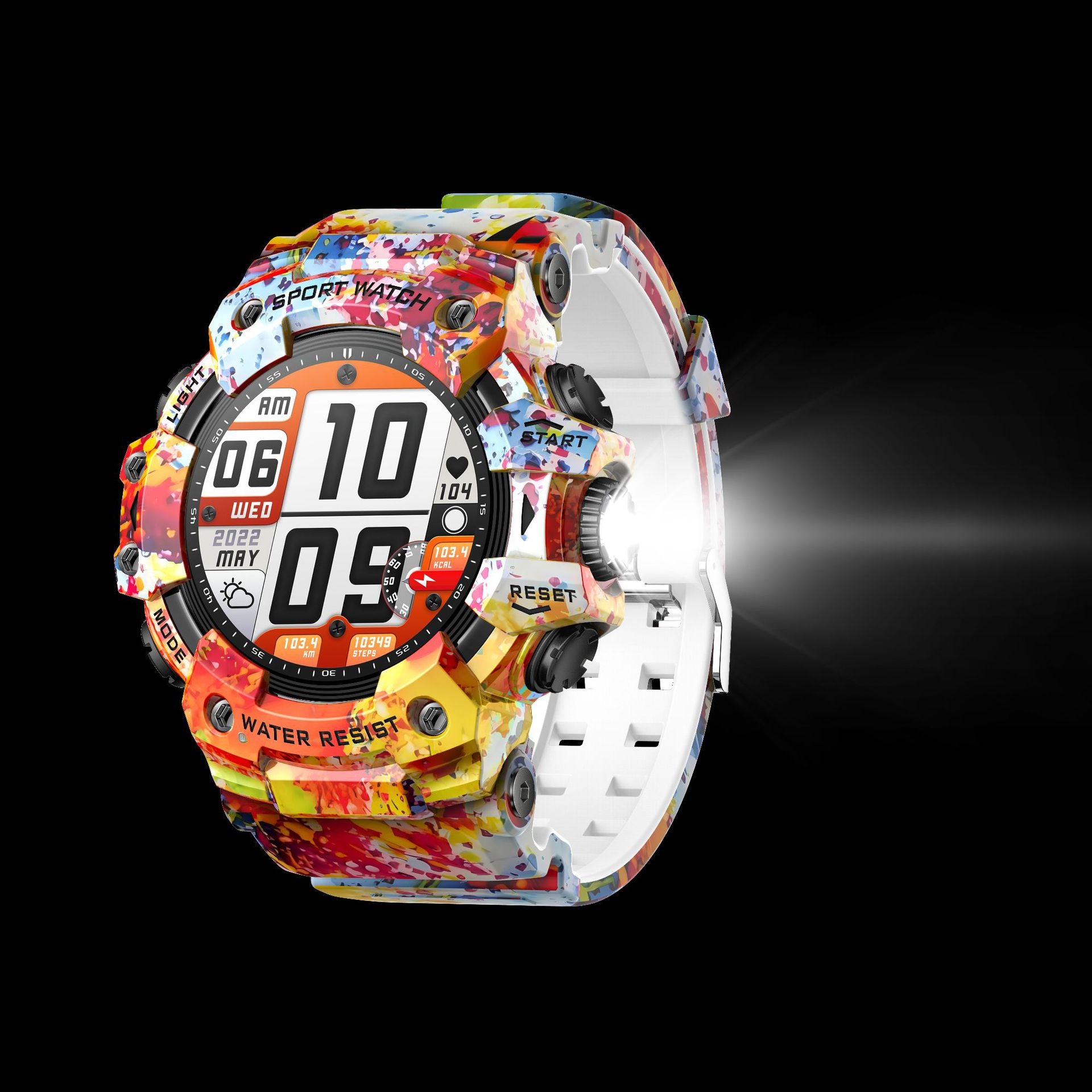- Rugged & Durable Design: Features an outdoor camouflage strap, multi-function buttons, and a 9H double-layer glass screen for enhanced durability.