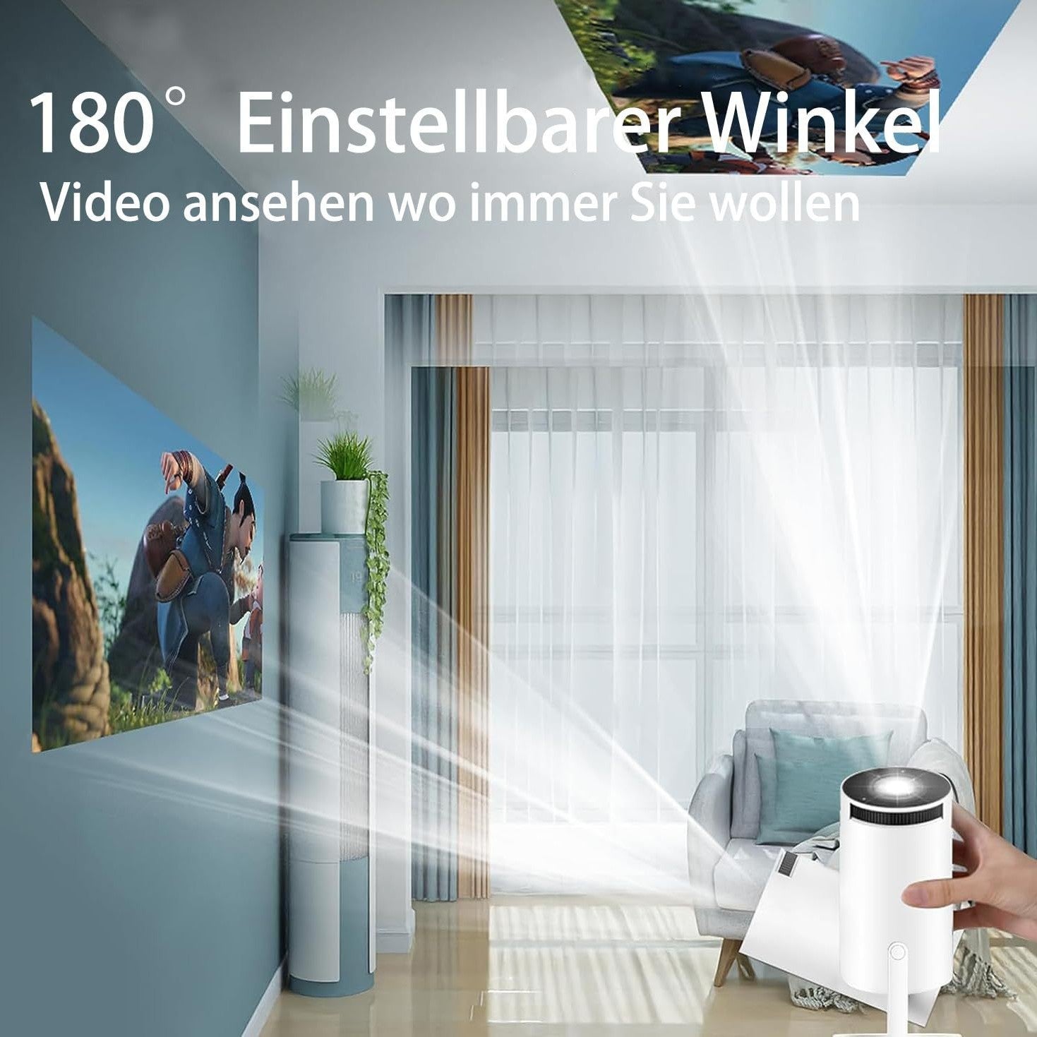 - 180-Degree Rotatable Projection: The innovative cylindrical design comes with a built-in stand that rotates 180 degrees, giving you the freedom to project your content anywhere from the floor to the ceiling.
