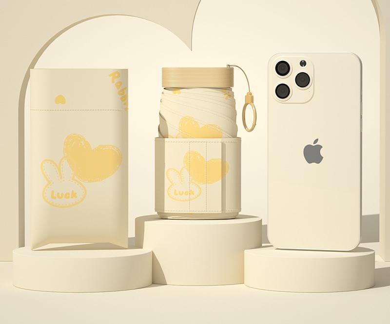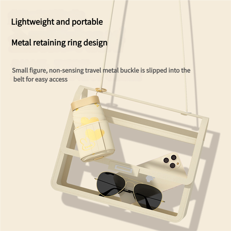 Ultra-Compact 7-Fold Folding Umbrella - UPF50+ Sun Protection & Portable Clip Design(Beige)