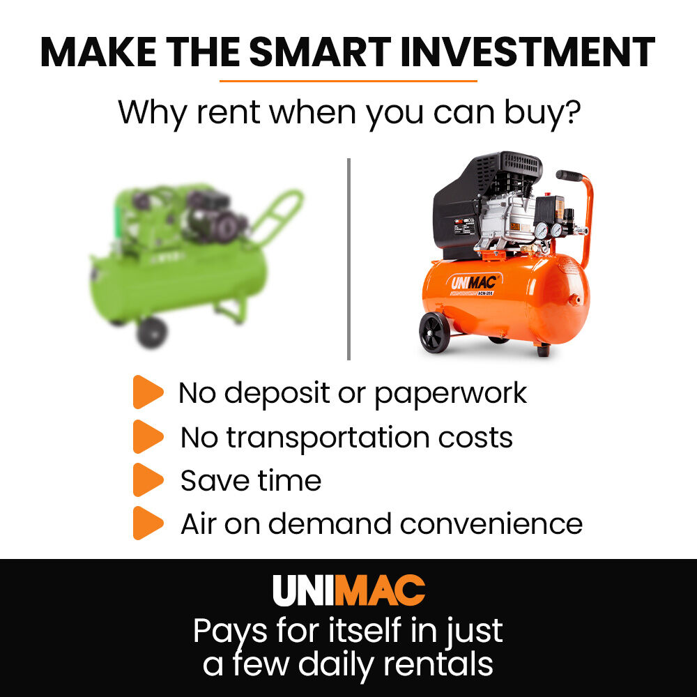 The Unimac ACM-250 Direct Drive Air Compressor is designed for tradies and DIYers who don't mess around. This unit packs the grunt and reliability you need when the pressures on.