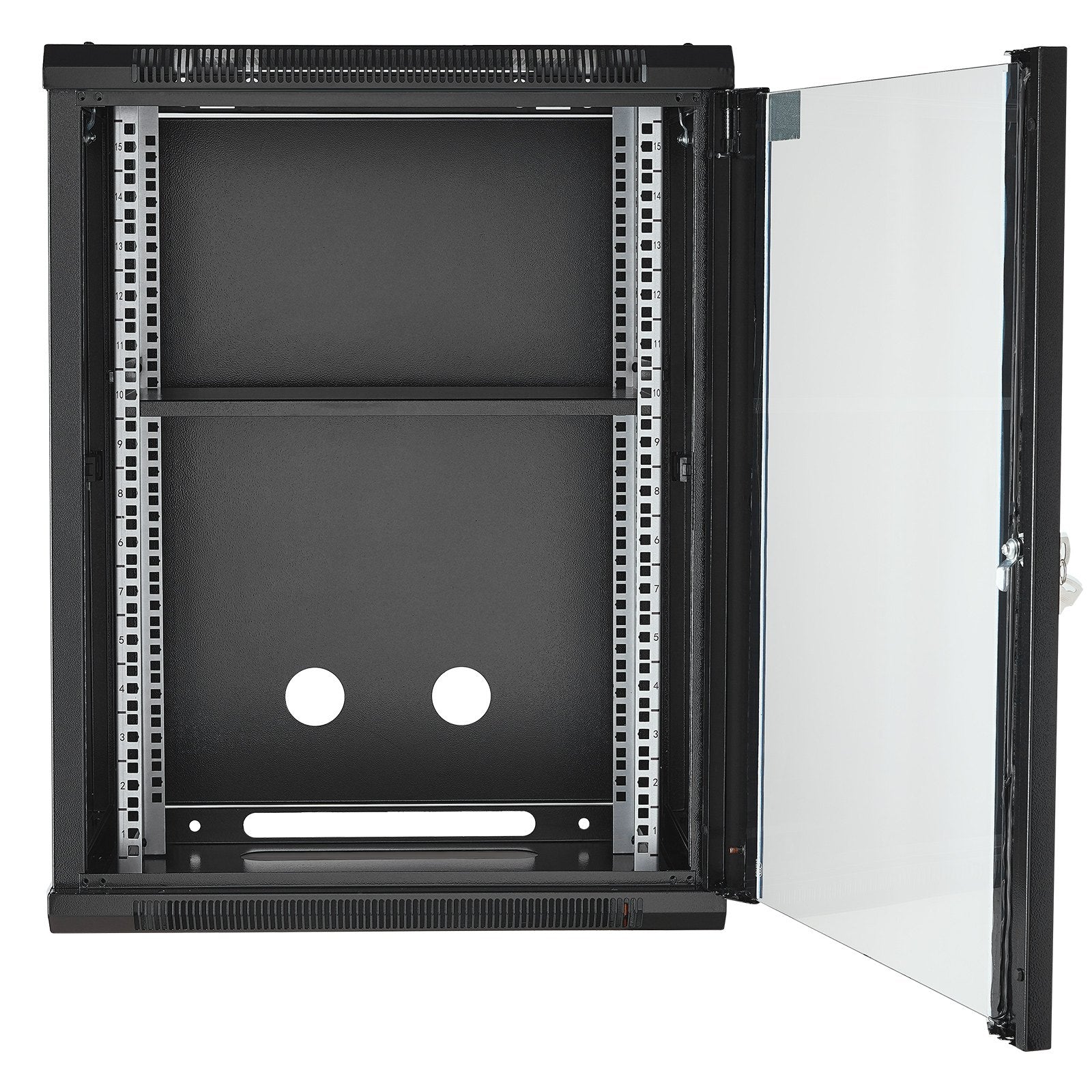 VEVOR 15U Wall Mount Network Cabinet, 226.8 kg Max. Ground Load Capacity, Server Rack Cabinet Enclosure with Locking Tempered Glass Door, Side Panels, Q235 Carbon Steel, for IT Equipment, A/V Devices