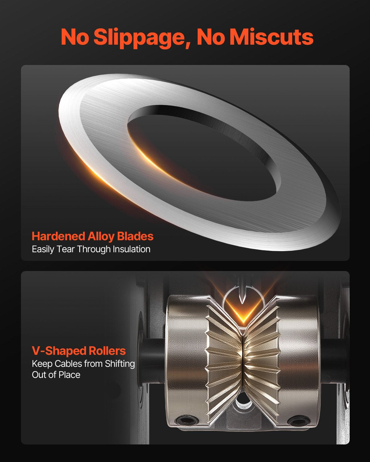 The 65Mn heat-treated blades and black oxide-coated 45# steel rust-resistant rollers grip and guide the wire more effectively. It ensures precise stripping and reduces the risk of slippage