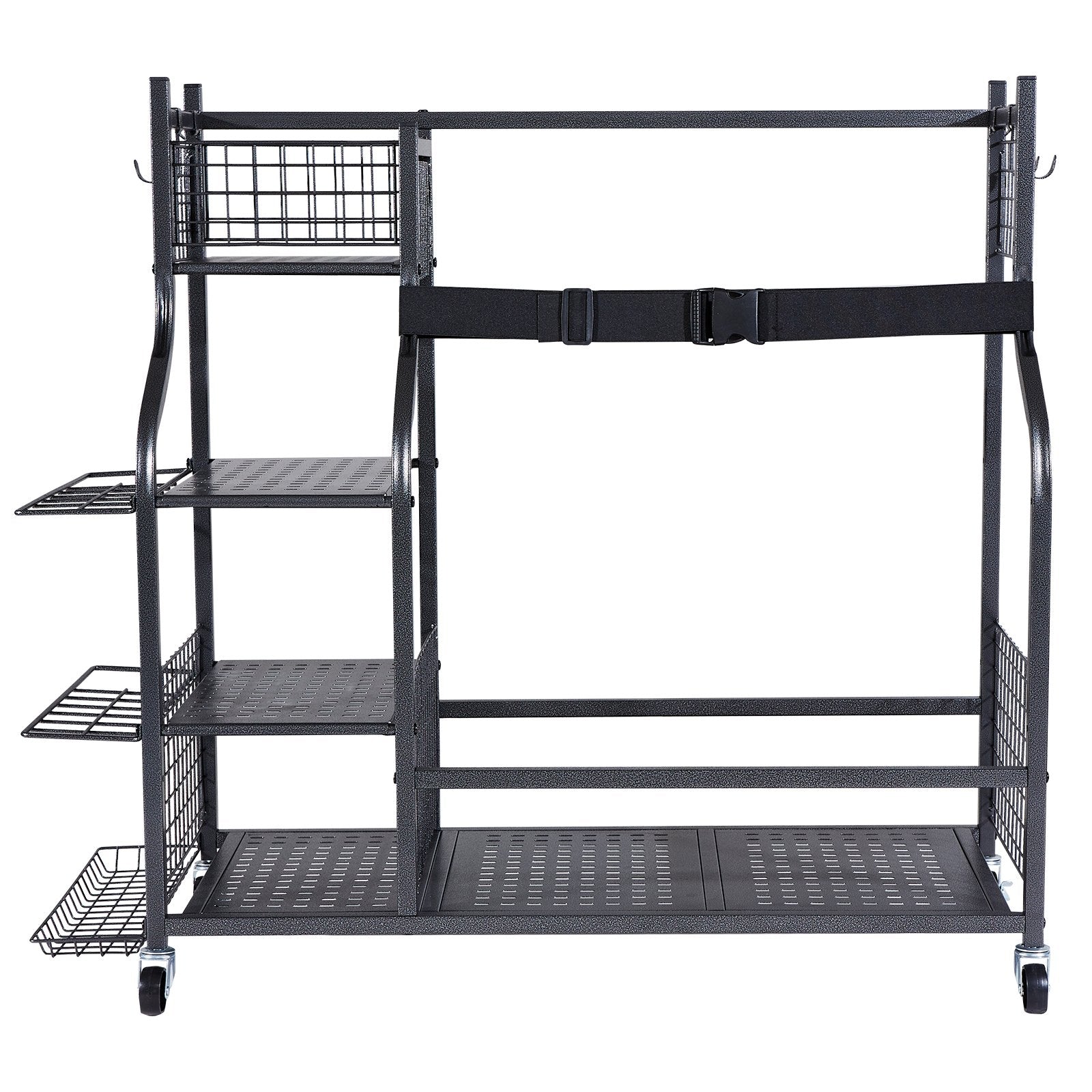 This garage sports storage equipment is equipped with 4 universal wheels that can rotate 360��, allowing you to easily move it anywhere. 2 wheels are lockable; you can securely lock the cart in place. Perfect for both indoor and outdoor use, eliminating the hassle of organizing equipment after sports, and letting you fully enjoy your activities.