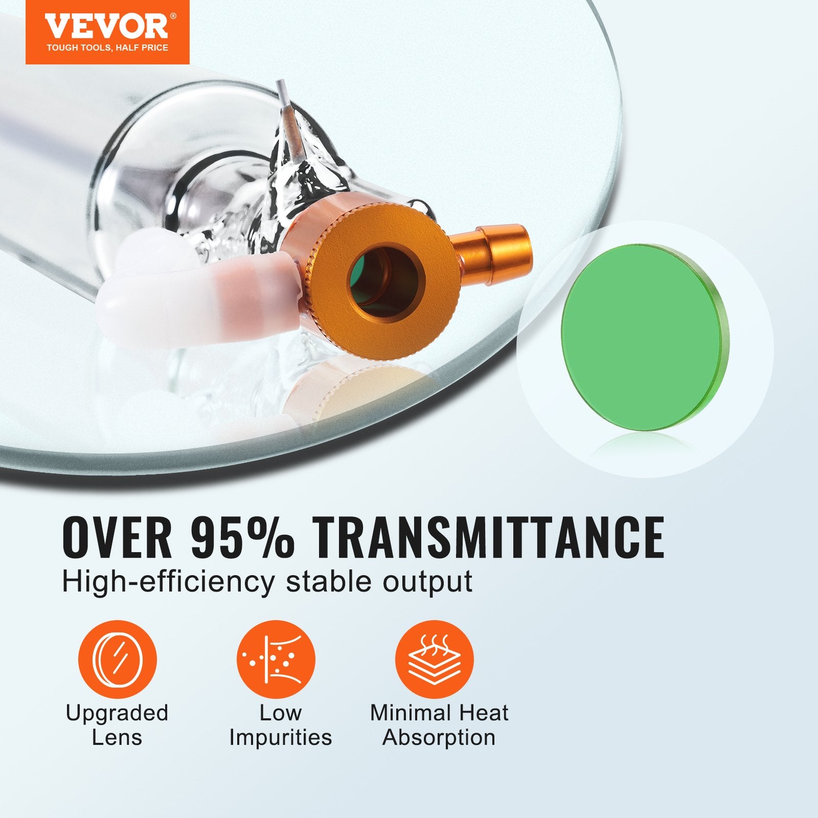 VEVOR Laser Tube, 50W CO2 Laser Tube for Laser Engraver and Cutter Machine, 850 mm Length, 50 mm Diameter, Glass Laser Cutting Tube with TEM00 Beam Mode, for Wood Acrylic Fabric Leather Bamboo