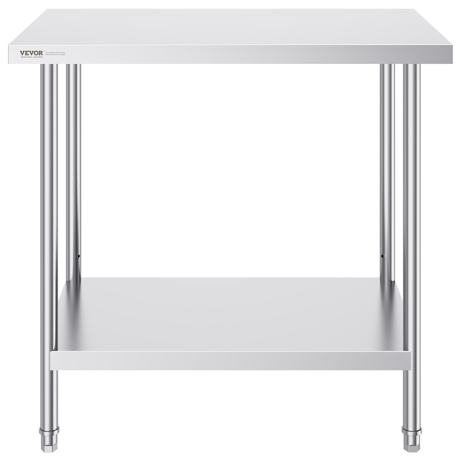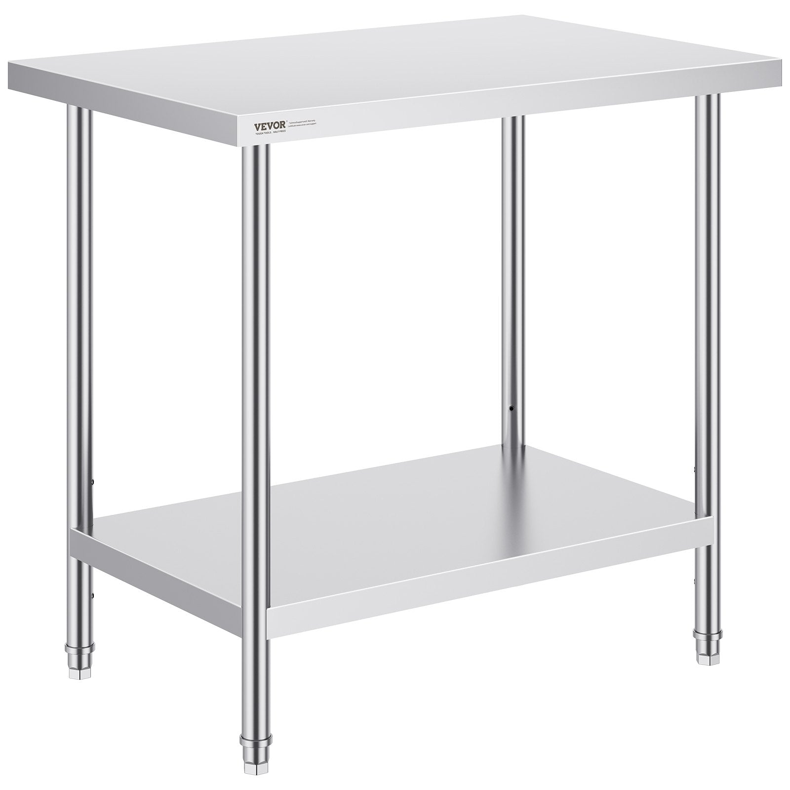 VEVOR Stainless Steel Prep Table, 24 x 36 x 34 Inch, Heavy Duty Metal Worktable with 3 Adjustable Height Levels, Commercial Workstation for Kitchen Garage Restaurant Backyard