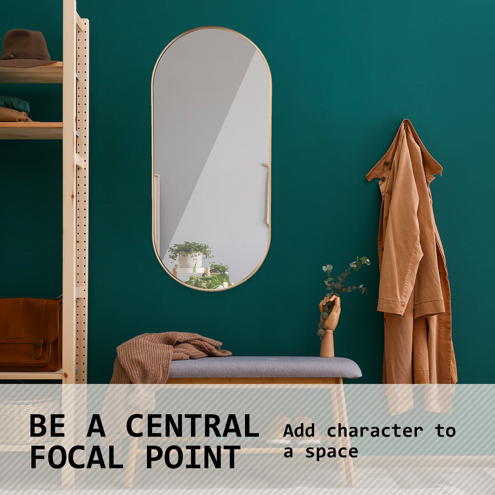 Wall Mirror Oval Aluminum Frame Bathroom 45x100cm GOLD