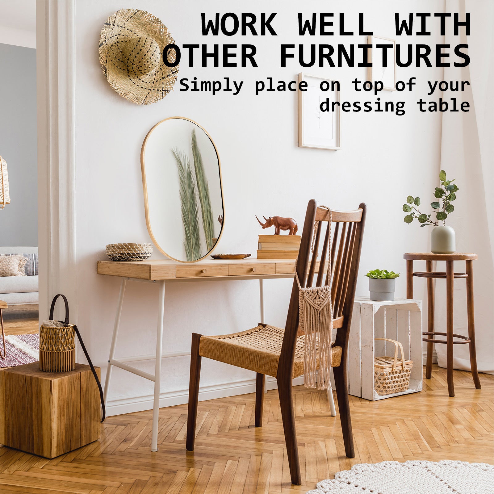 The oval mirror is stylish and neat in design and comes with a 2.8cm thickness slender aluminum frame that is sure to capture the attention of all. Plus, its curved lines all around will become a central focal point in any room which makes spaces feel more inviting and relaxing.