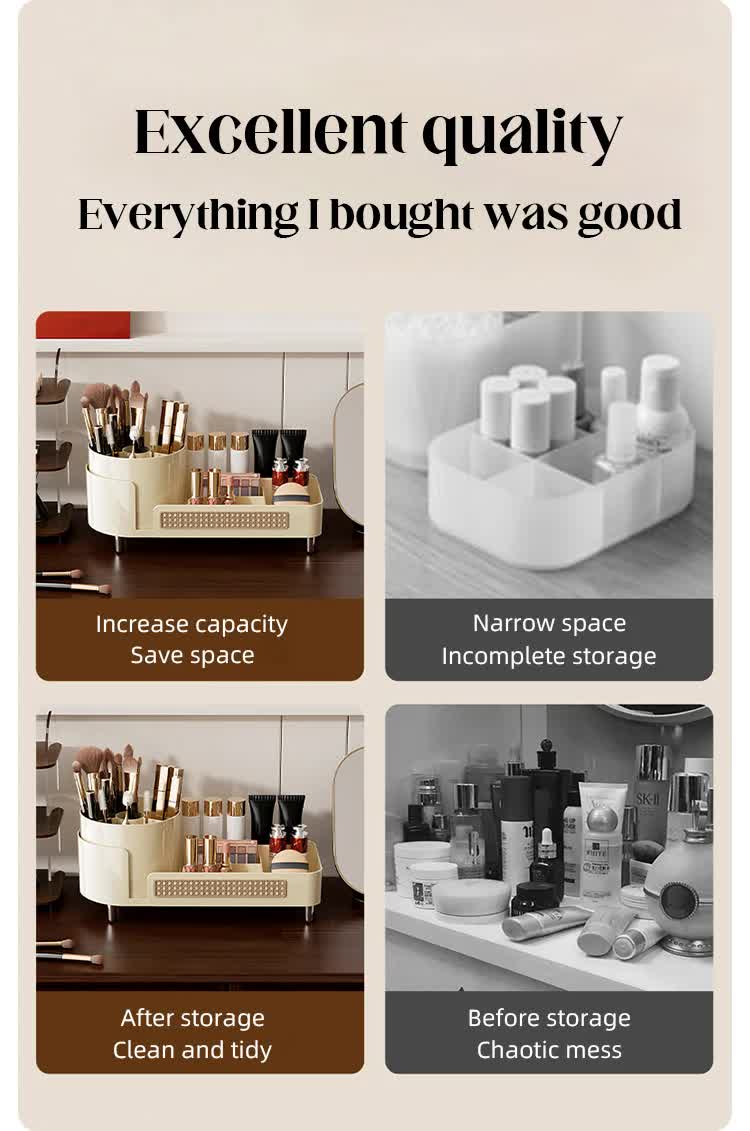 Luxury Cosmetic Organizer - a stylish and multifunctional storage solution for your beauty essentials. Designed for convenience and elegance, this organizer keeps your makeup tools and products neatly arranged.