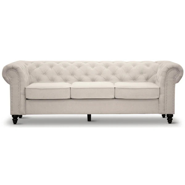 Canberra Linen Fabric Tufted Armchair in Dark Grey