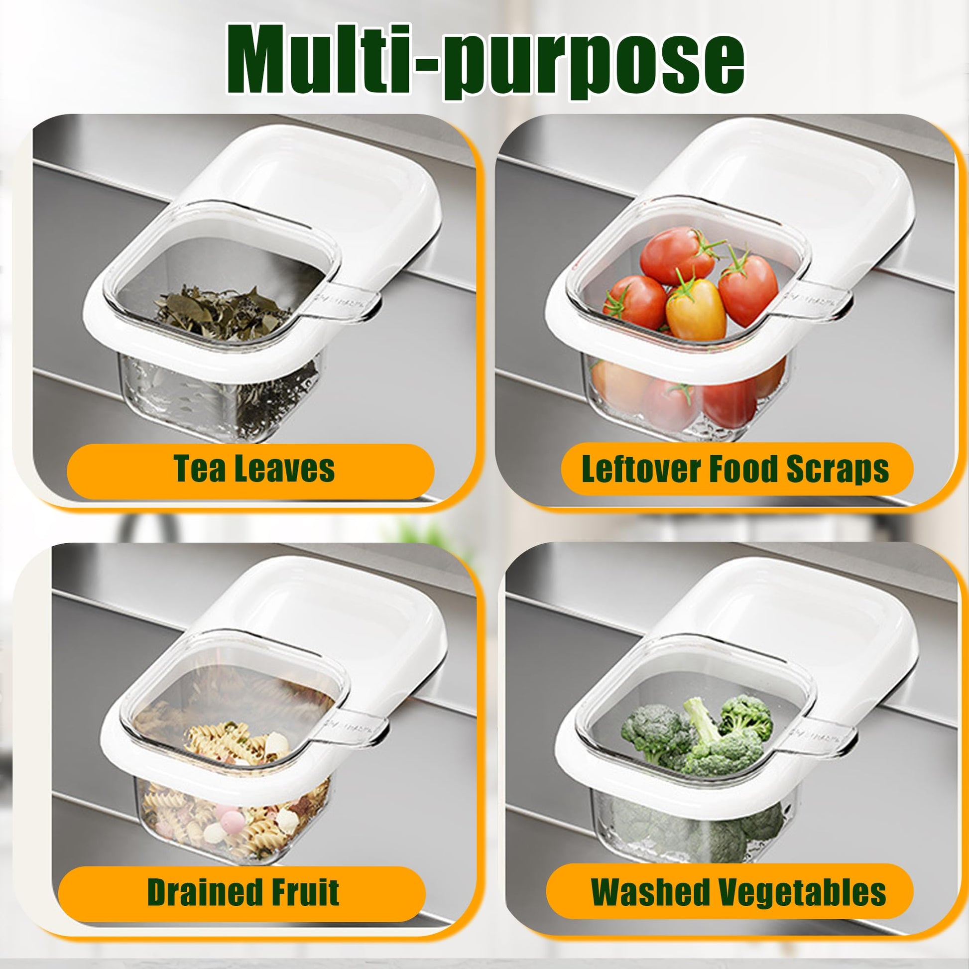 This versatile sink filter is more than just a trash catcherit doubles as a washing basket for fruits, vegetables, and pasta, making meal prep easier and mess-free. Simply rinse under running water, then lift the basket to empty contents directly into a compost bin or trash canno dirty hands required. The built-in top tray provides extra storage for sponges, scrubbers, or dish soap, maximizing counter space and organization.