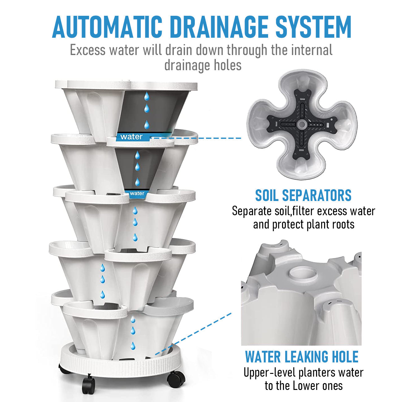 - Aesthetic Appeal: This stackable planter adds a decorative element to your garden or indoor space, enhancing the visual appeal of your home while also providing practical functionality.