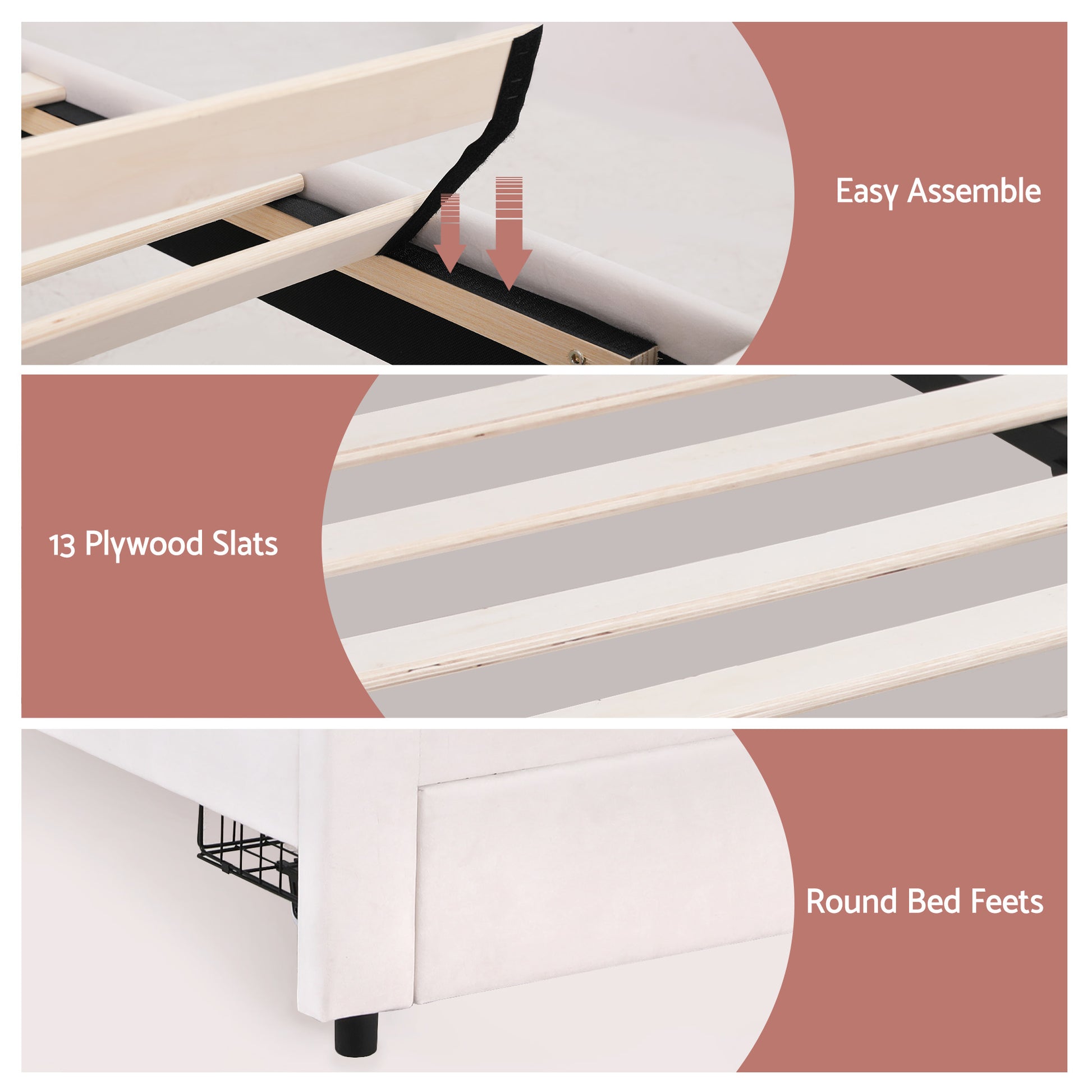 Material: Velvet Fabric+Plywood+Sponge+Pine Wood+Metal