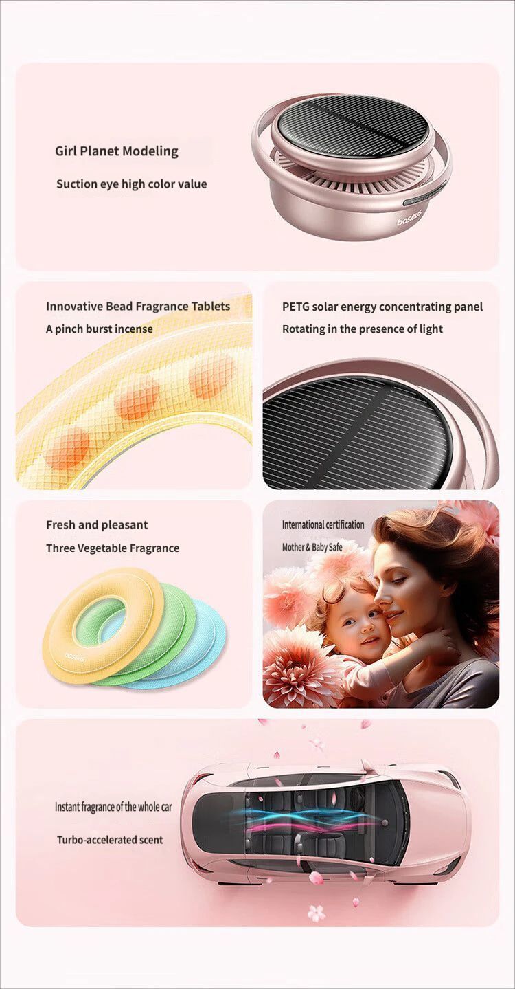 Solar-Powered Car Perfume Stand for Dashboard, Pink Fragrance