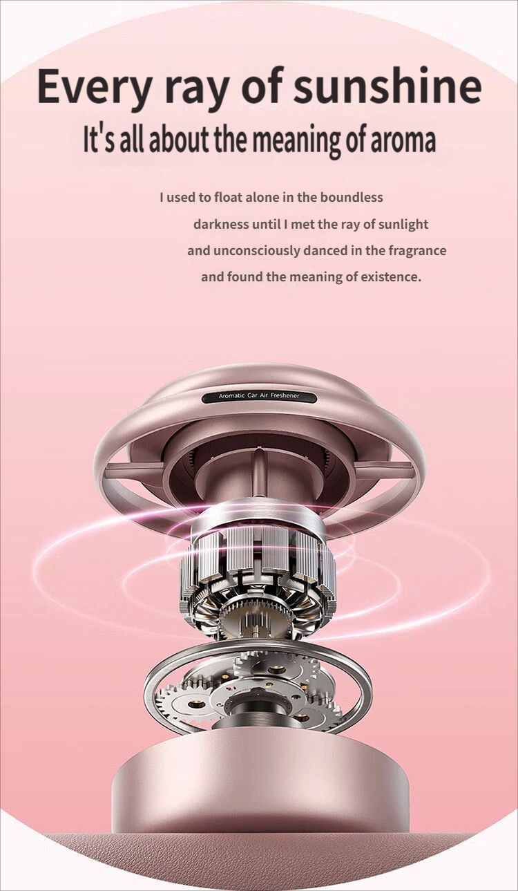 In-Car Product for Formaldehyde Removal and Odor Elimination, Pink Aroma. Self-rotating When Exposed to Light. No Charging Required.