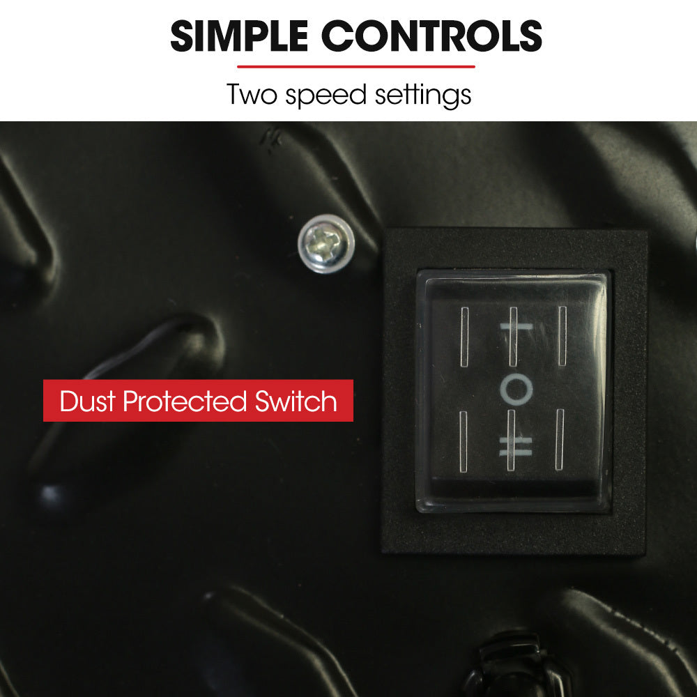 The fan is simple to operate via the dust protected switch, and comes with a 3-metre power cord, giving you flexibility in placement without needing an extension lead. Whether for cooling or ventilation, this fan is engineered to perform.