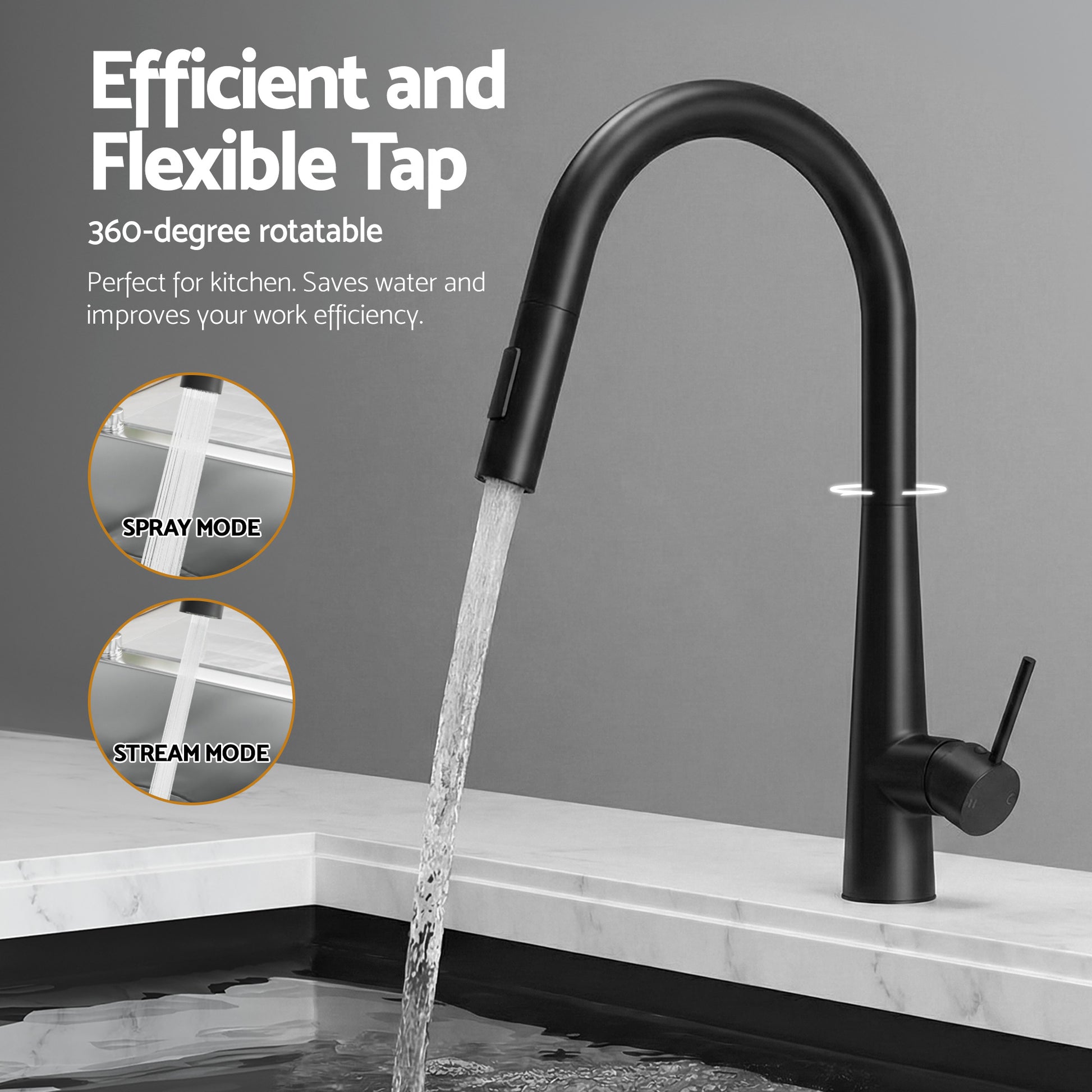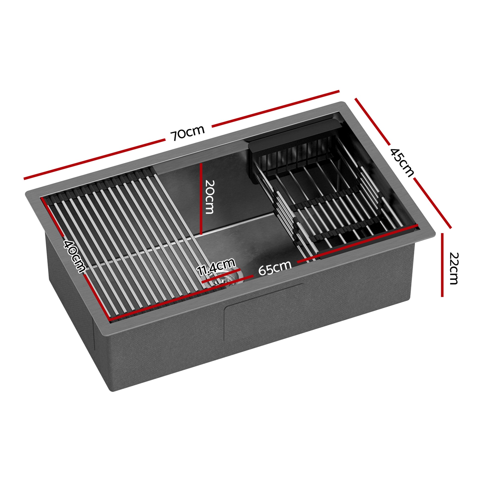 Cefito Stainless Steel Sink 70x45CM With Pull Out Mixer Tap Kitchen Basin Single Bowl Black