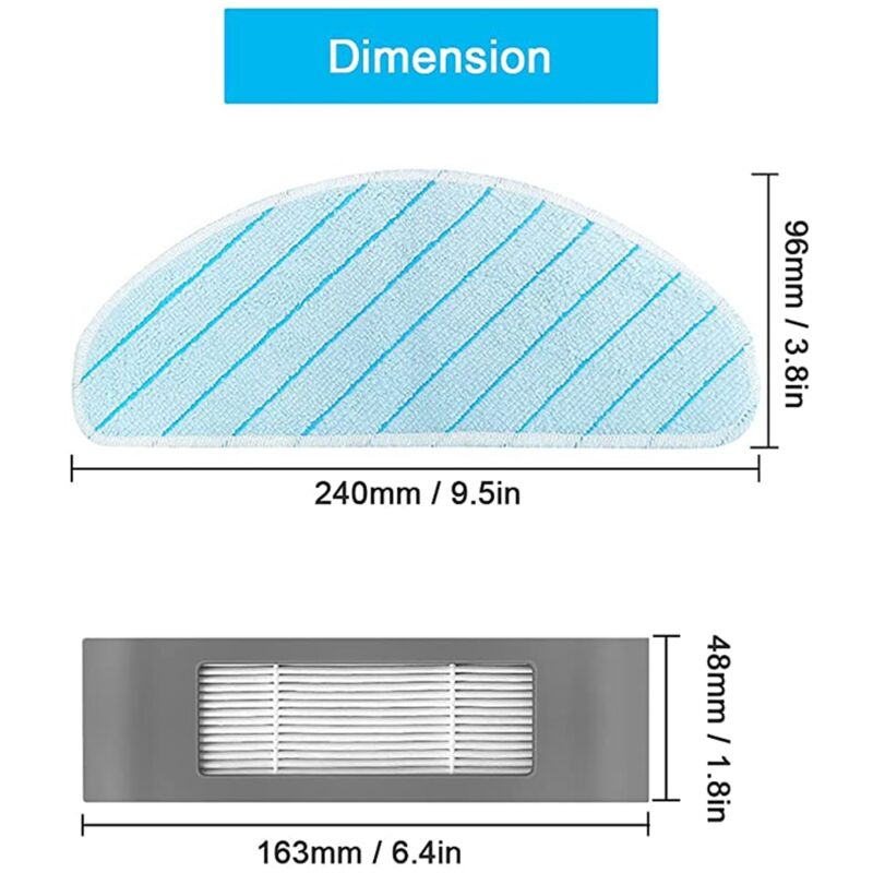 Brand new, high quality, well-made and . Clean brushes keep your robot vacuum cleaner in top condition. As part of routine maintenance, the accessories are easy to disassemble and replace. The filter keeps the robot clean and reduces the ingress of dust, pollen and other allergens into the air you breathe. To achieve the best cleaning and filtering effect, the filter should be replaced every 2-3 months depending on the frequency of use. Color: As shown Material: Plastic Package Contents: 3 x Mops 5 x Disposable Mops 6 x Side Brushes 4 x Filter Screens Only the above package contents, other products are not included. included. Note: Light shooting and different displays may cause the color of the item in the picture a little different from the real thing. The measurement allowed error is +/- 1-3 cm.