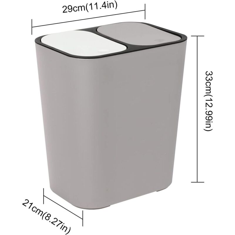 Double Recycling Trash Bin Storage Box Container Rectangle Plastic Push Button Dual Compartment For Kitchen Office Home