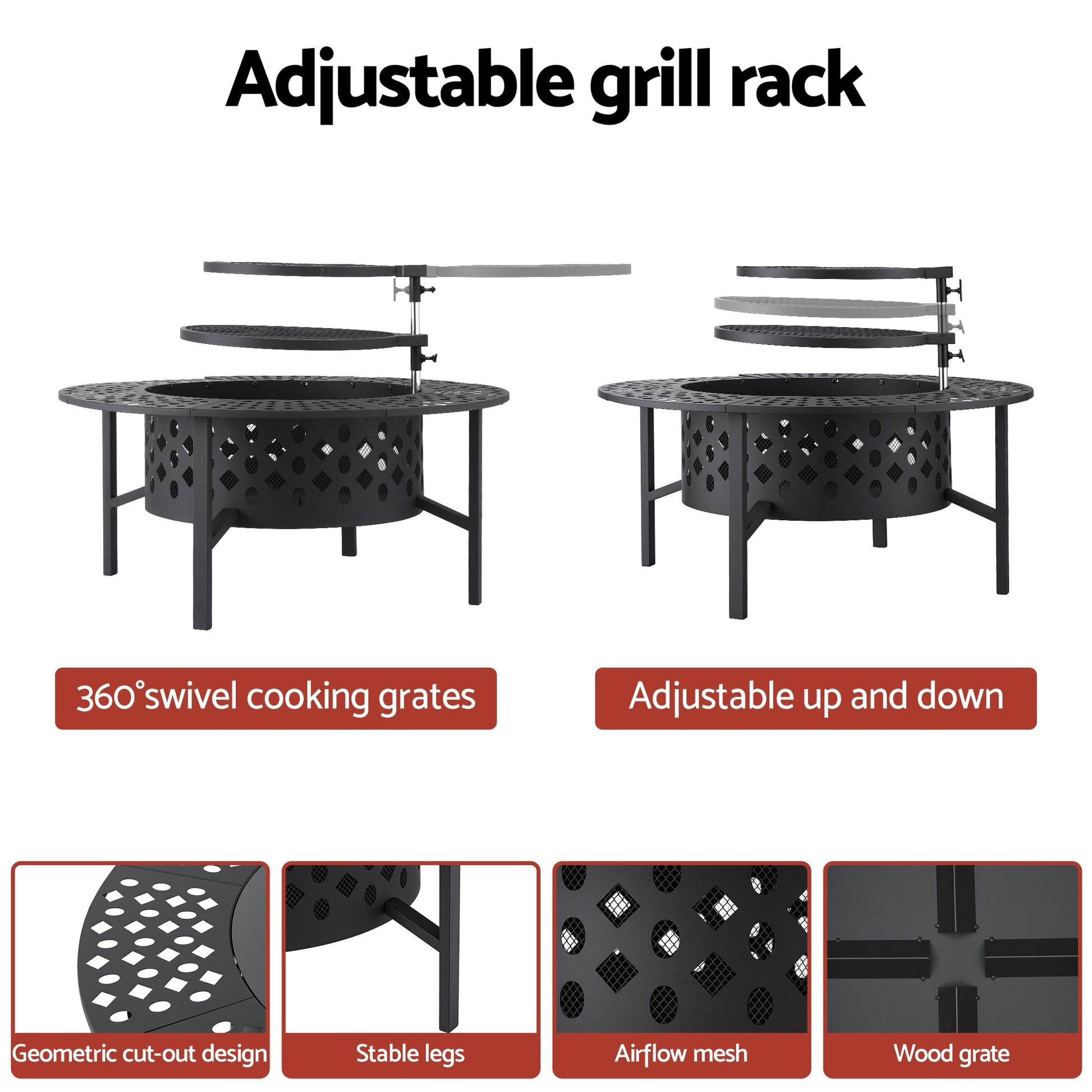 3-in-1 Design (Bonfire, BBQ, Table)