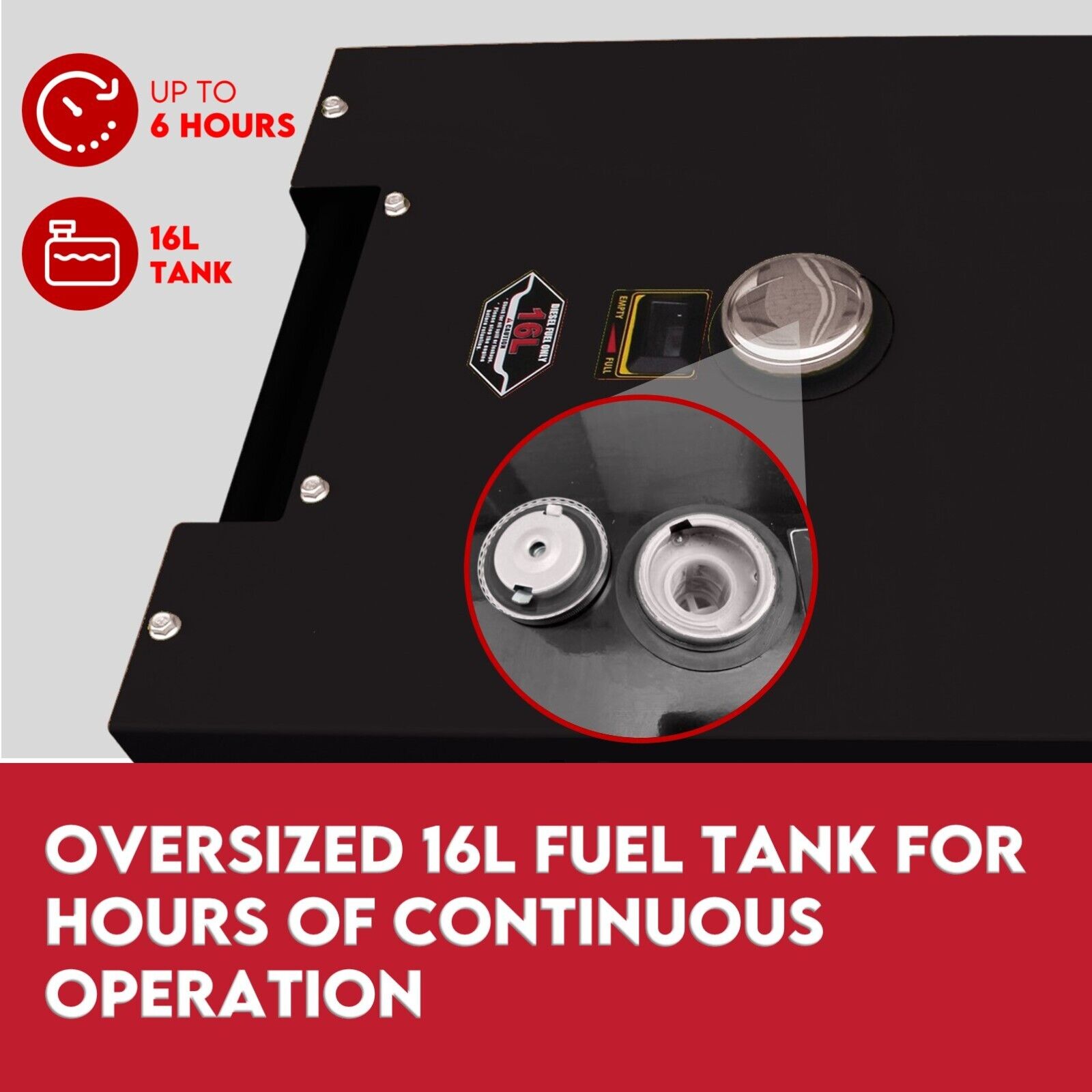 - Fuel Tank Capacity: 16L